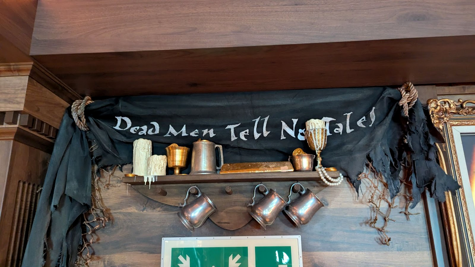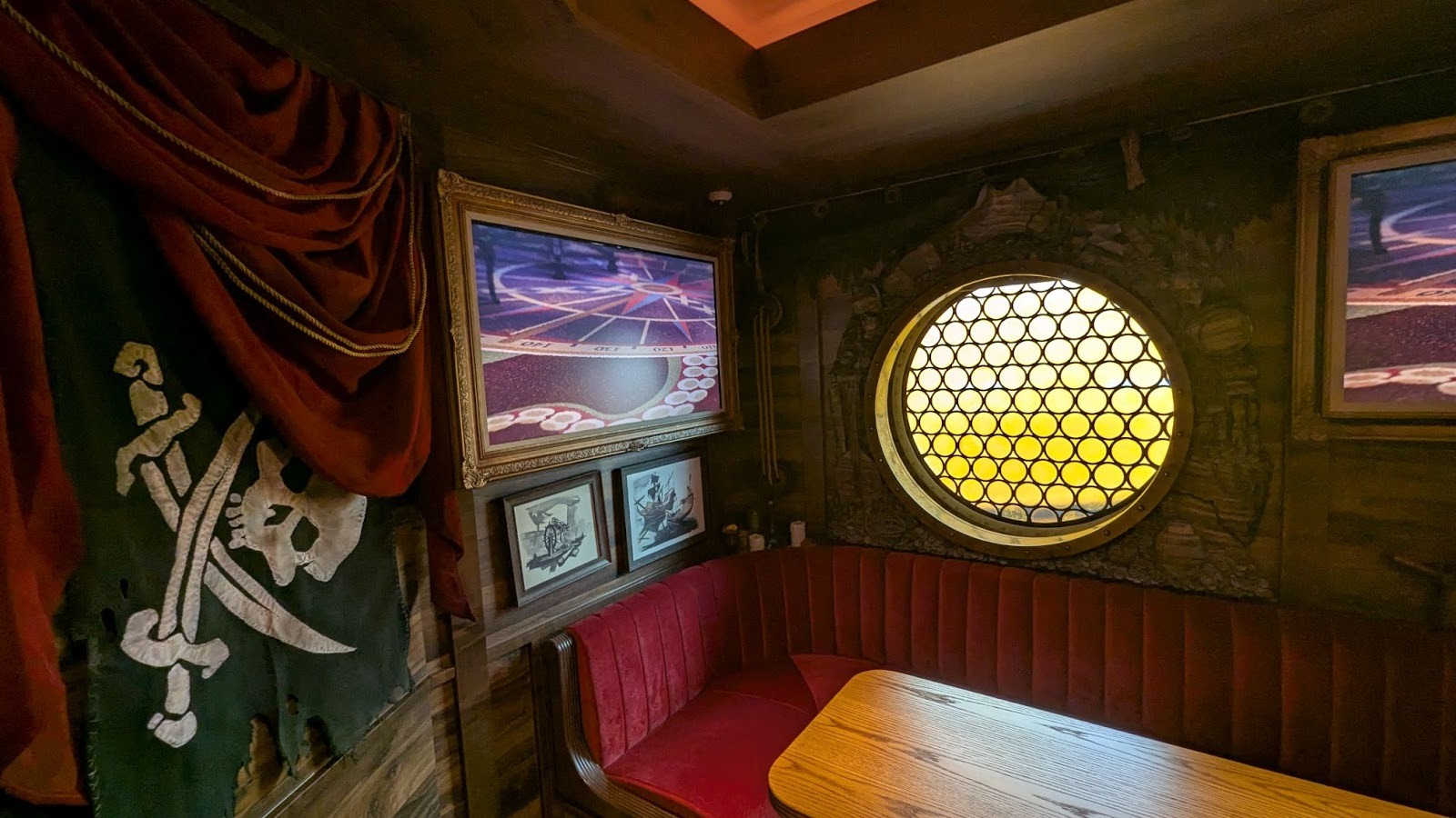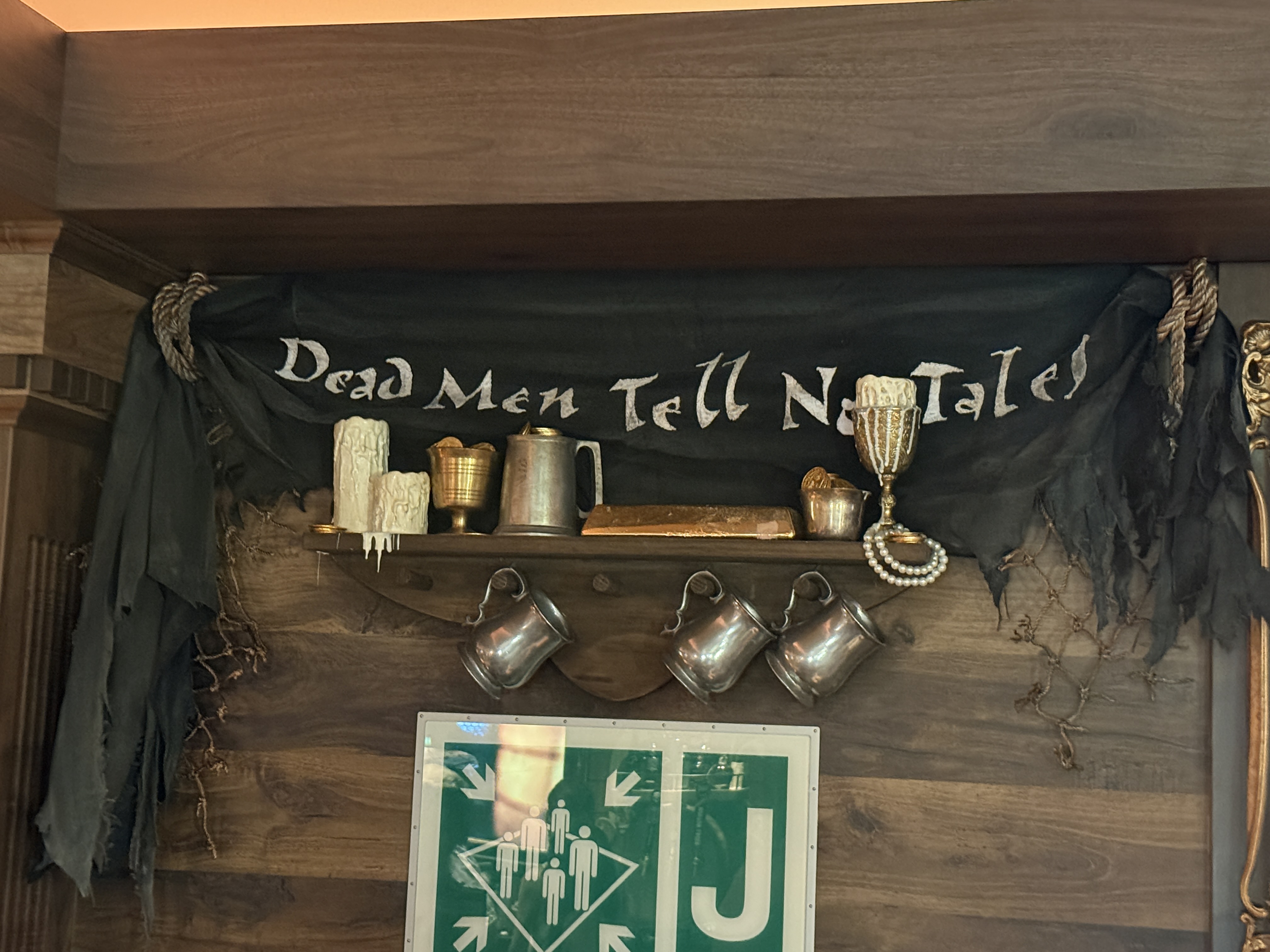 - The entire venue is loaded with nautical motifs and pirate iconography, including: