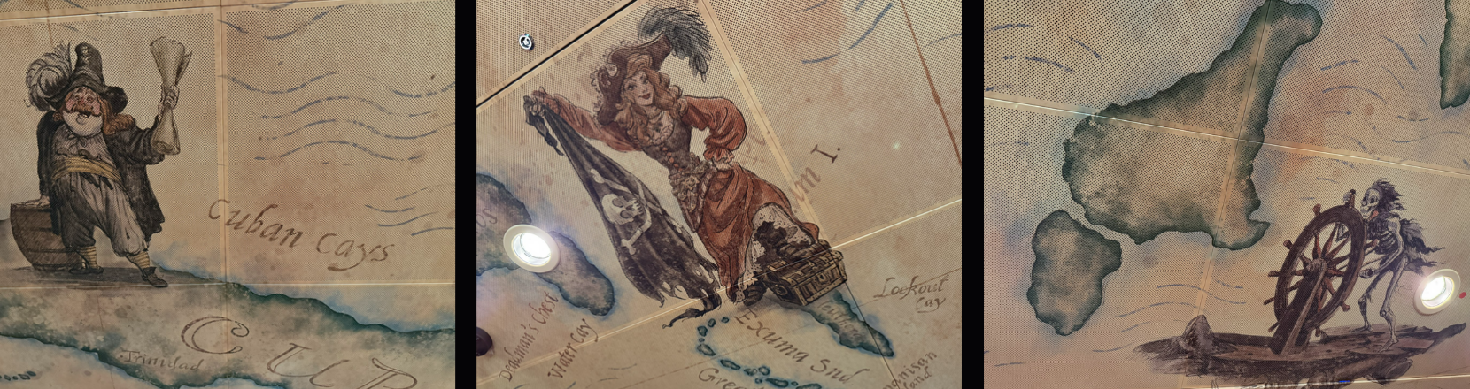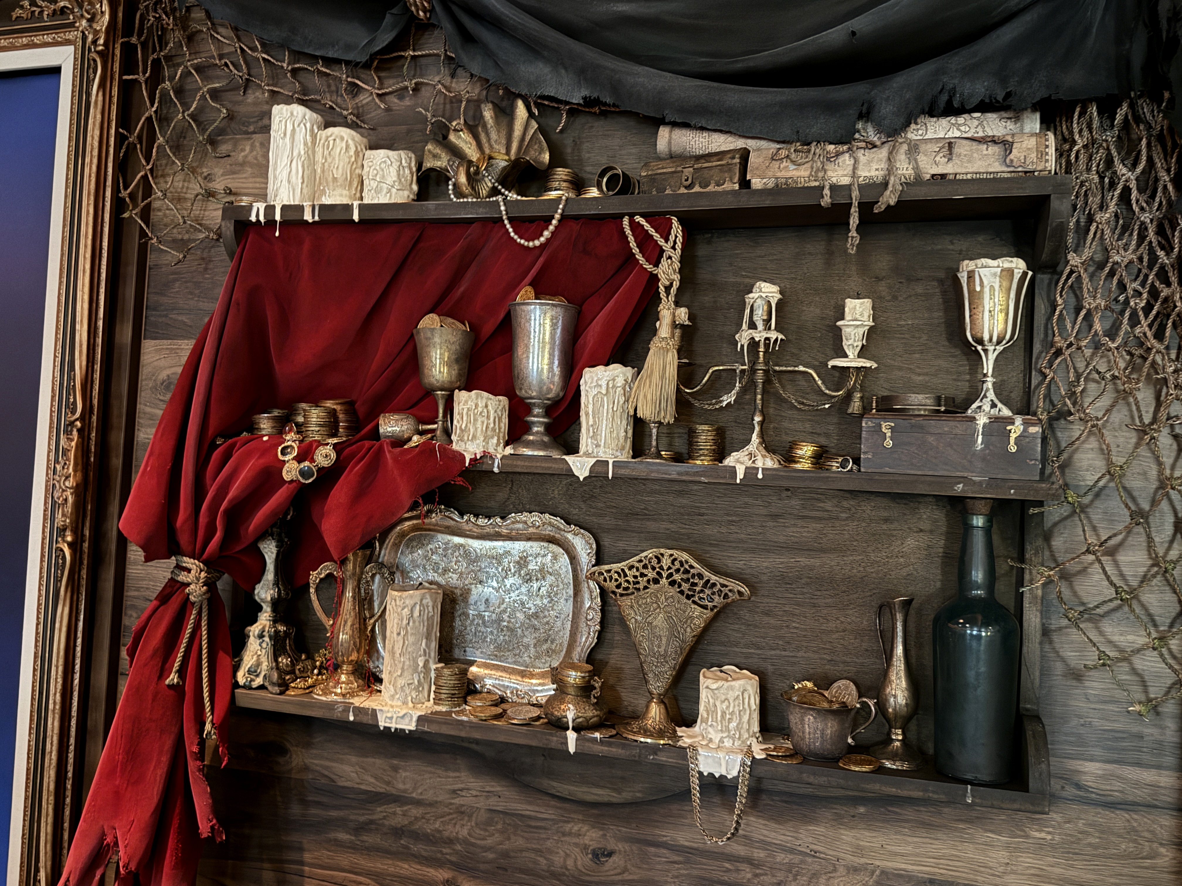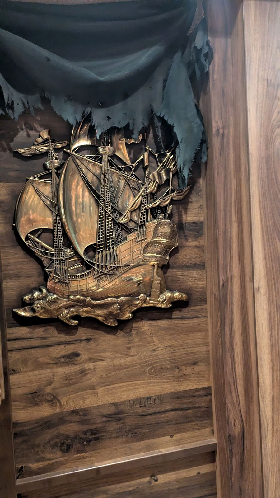 - The entire venue is loaded with nautical motifs and pirate iconography, including: