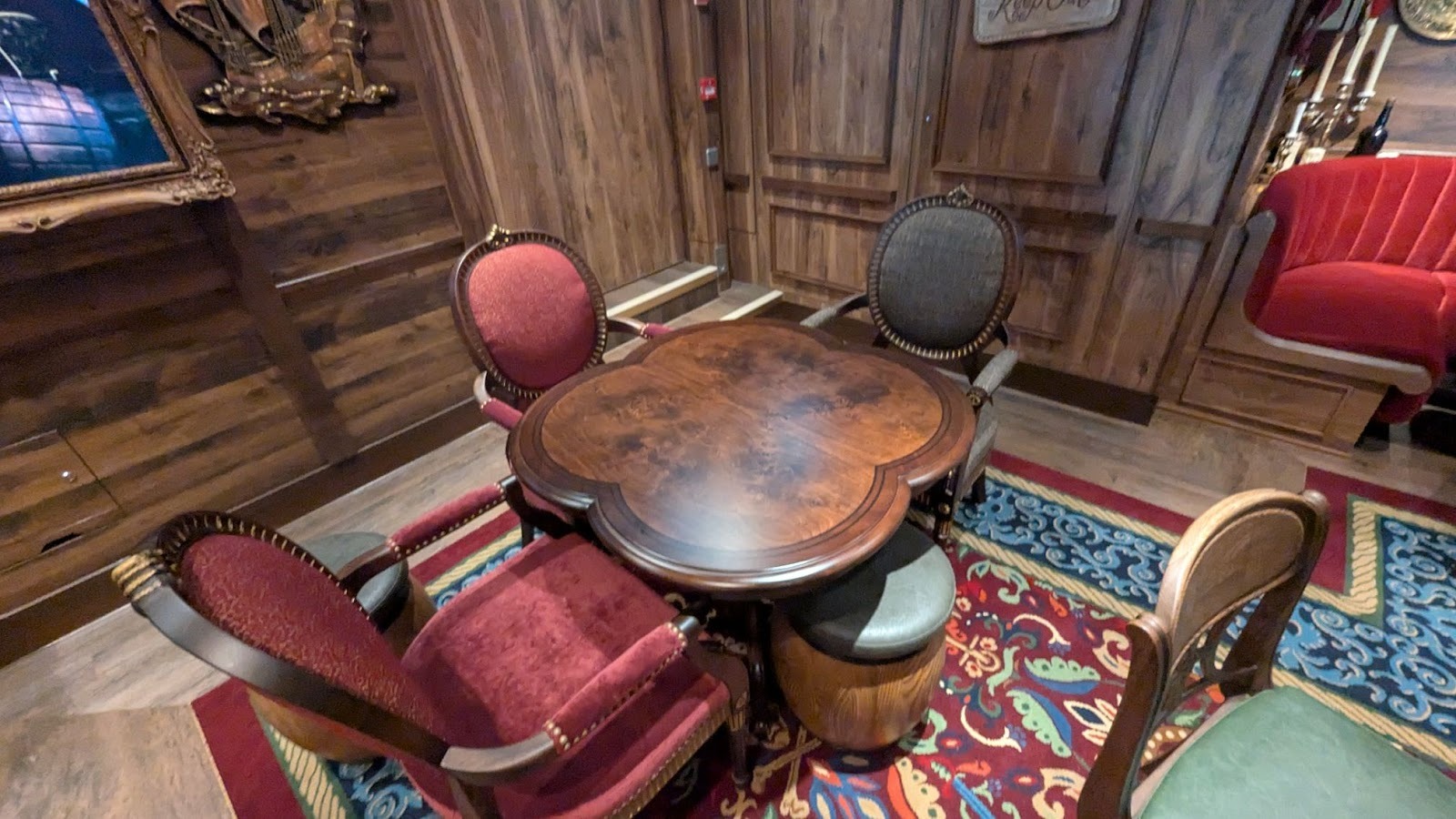 - An interior decked out in wooden planks, evoking a sea-worn ship.
