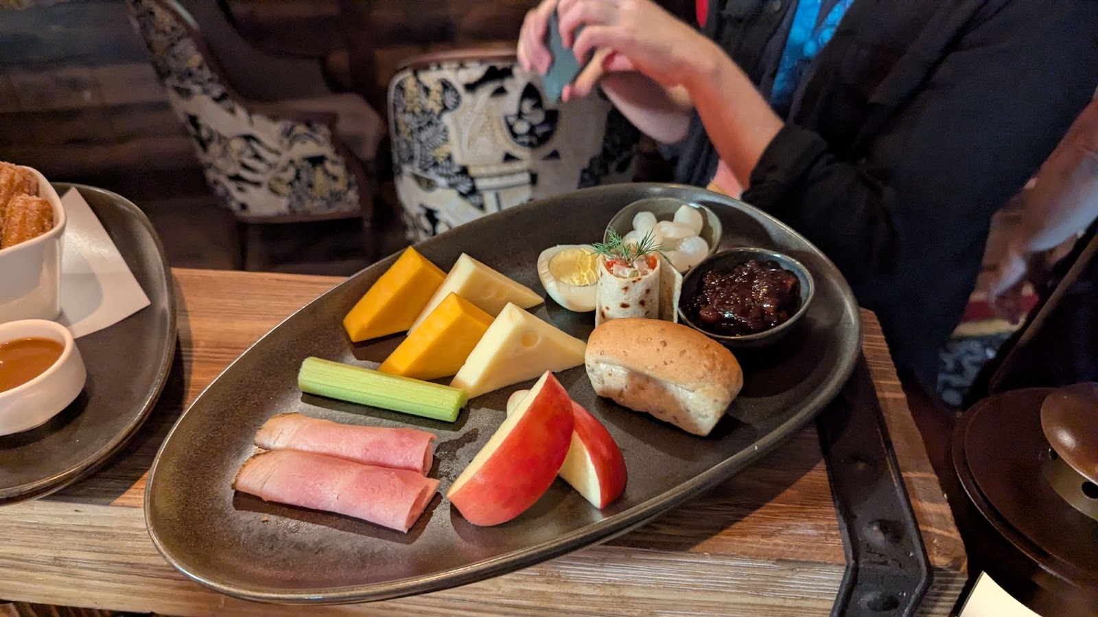 - Spiced Sausage with Gurkan and Sour Cream Lefse, Rosemary Ham, Cheddar, Jarlsberg Cheese, Boiled Egg, Apple, Celery, Pickle Chutney and Pickled Onions, Served with Rye Bread