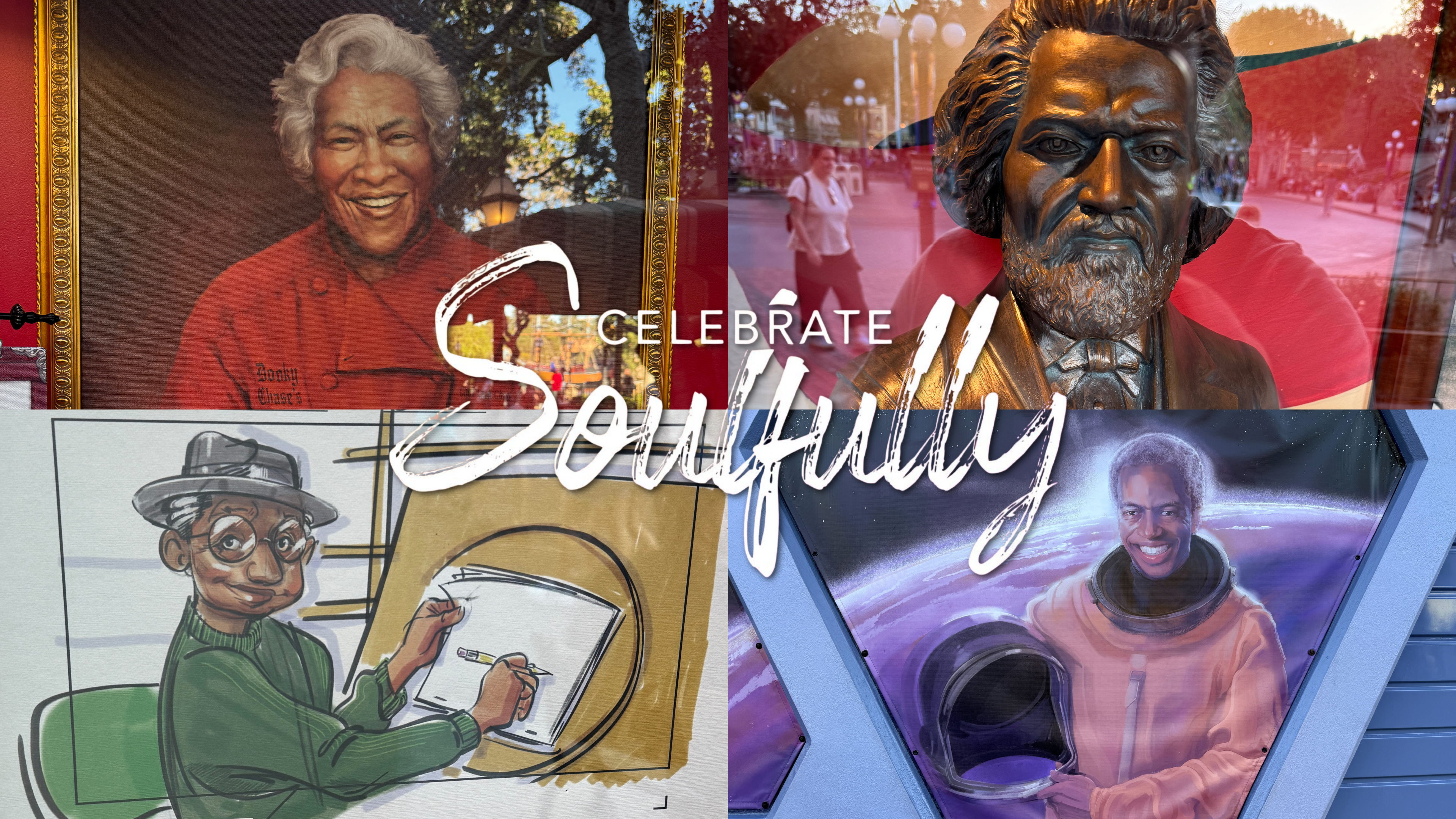 Celebrate Soulfully has arrived to the Disneyland Resort, celebrating Black culture all month-long through food, music and a new series of displays. Here, we take a look at the new heritage trail of dynamic displays across the resort, celebrating influential Black leaders, artists, and thinkers from the past and present. From Frontierland to Hollywood Land and various spots in between, each display will recognize how these inspiring individuals shaped culture and industries for generations.