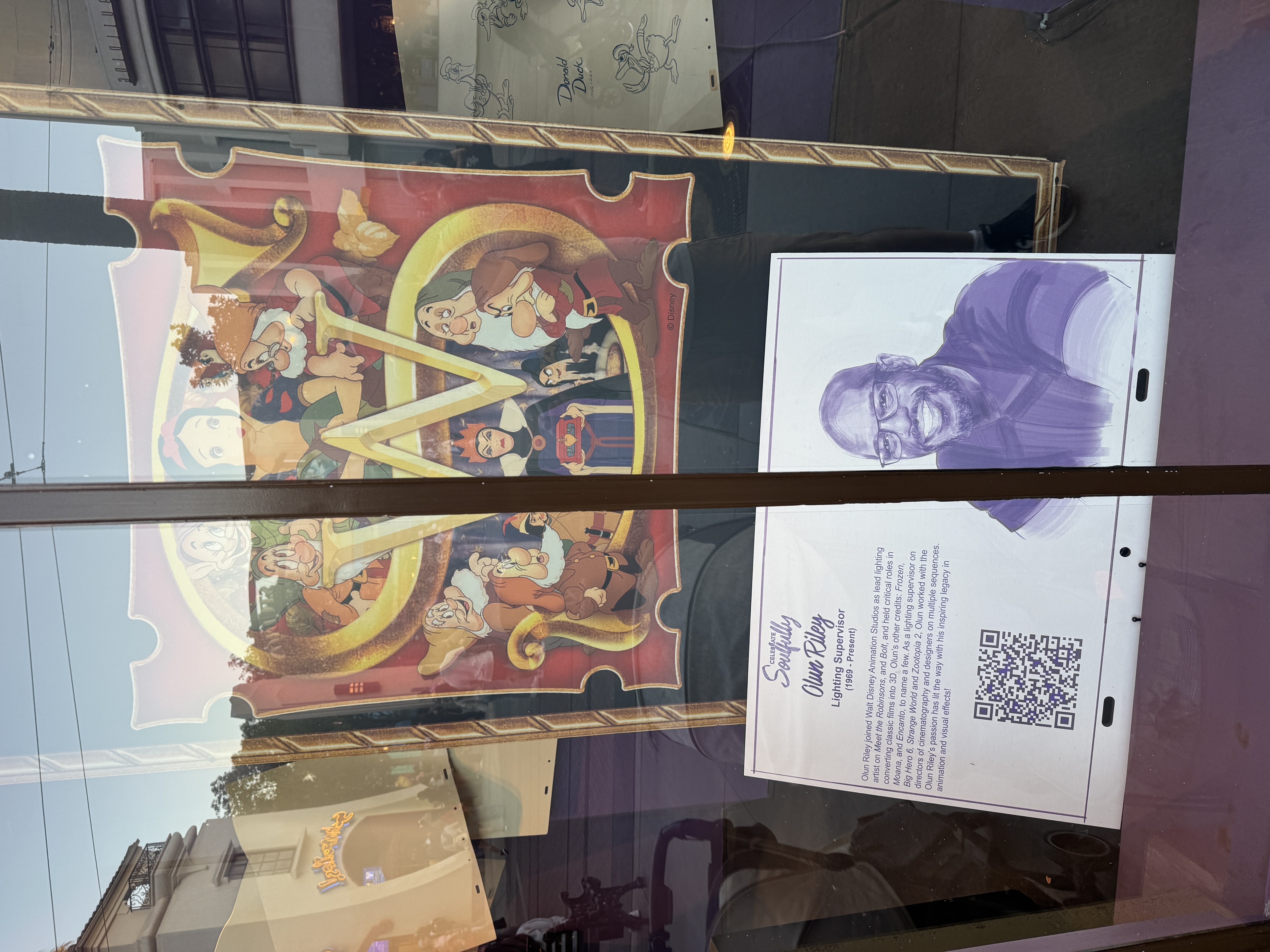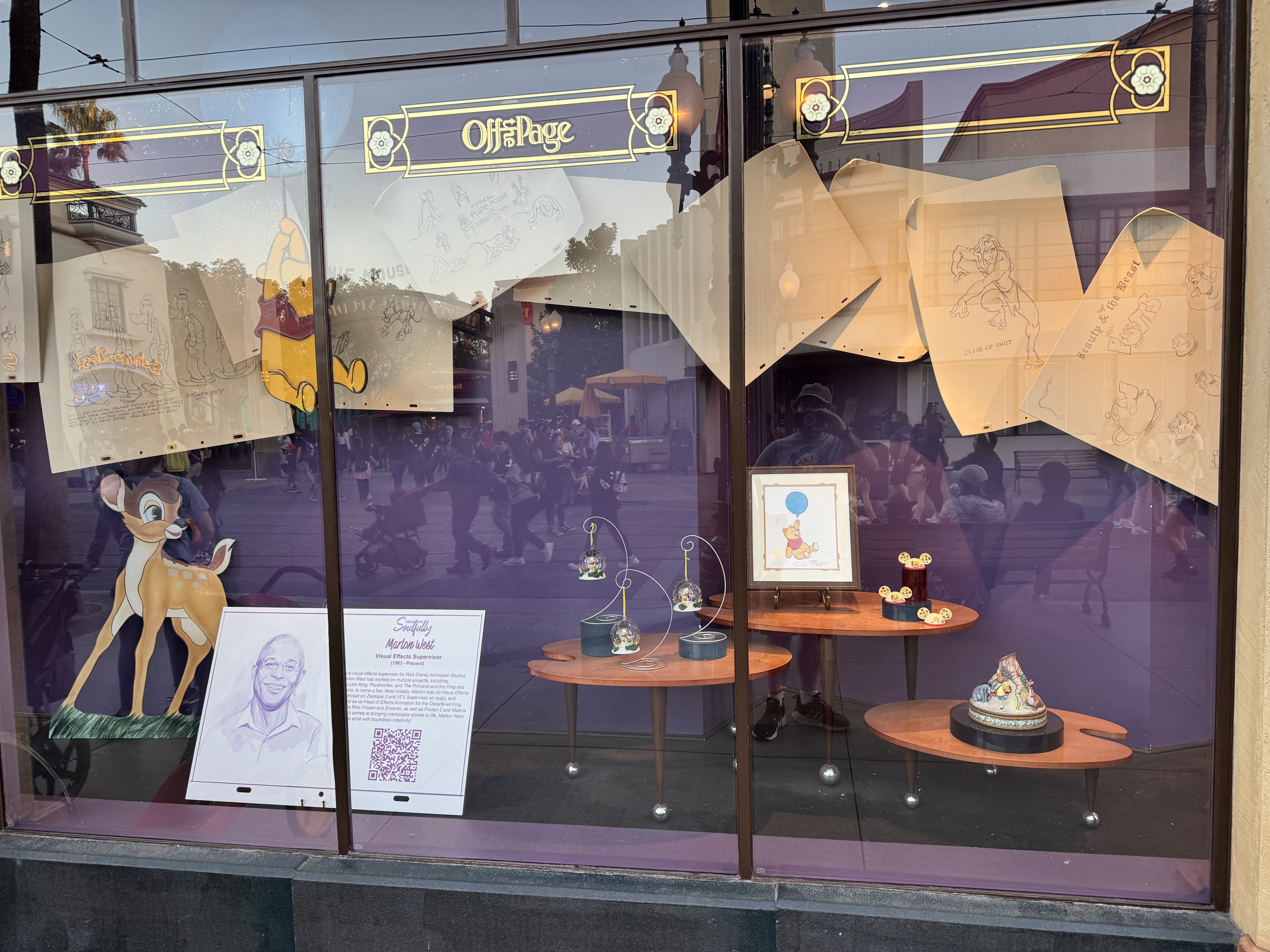A window dedicated to Disney's first Black animator, Ron Husband, was being prepared during our visit. Some of Ron's sketches of characters such as Gaston are displayed in the window, but it has yet to receive any dedication to Ron himself.
