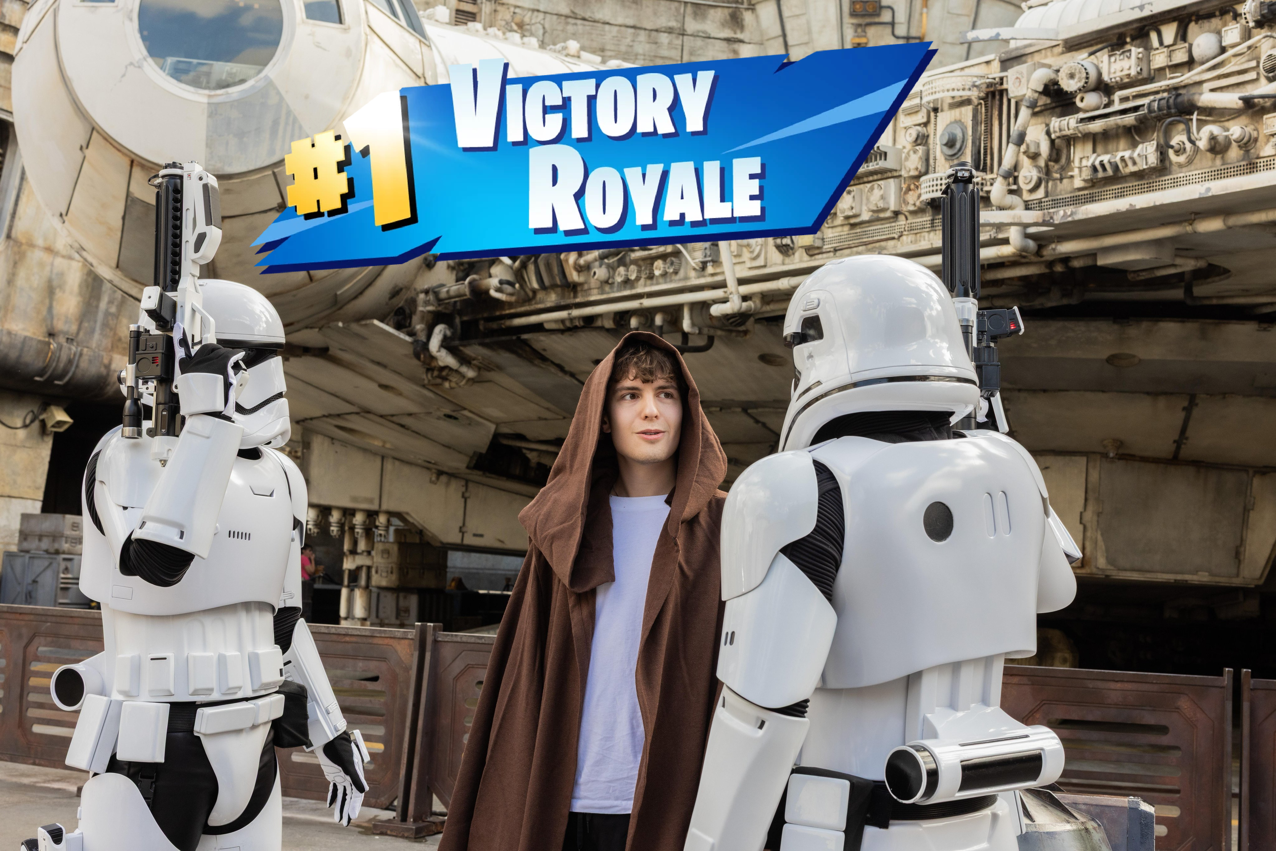 - While there may be people who have won on their phones while in the park, Clix had a whole PC set up where he got a Victory Royale right in front of the Millennium Falcon.