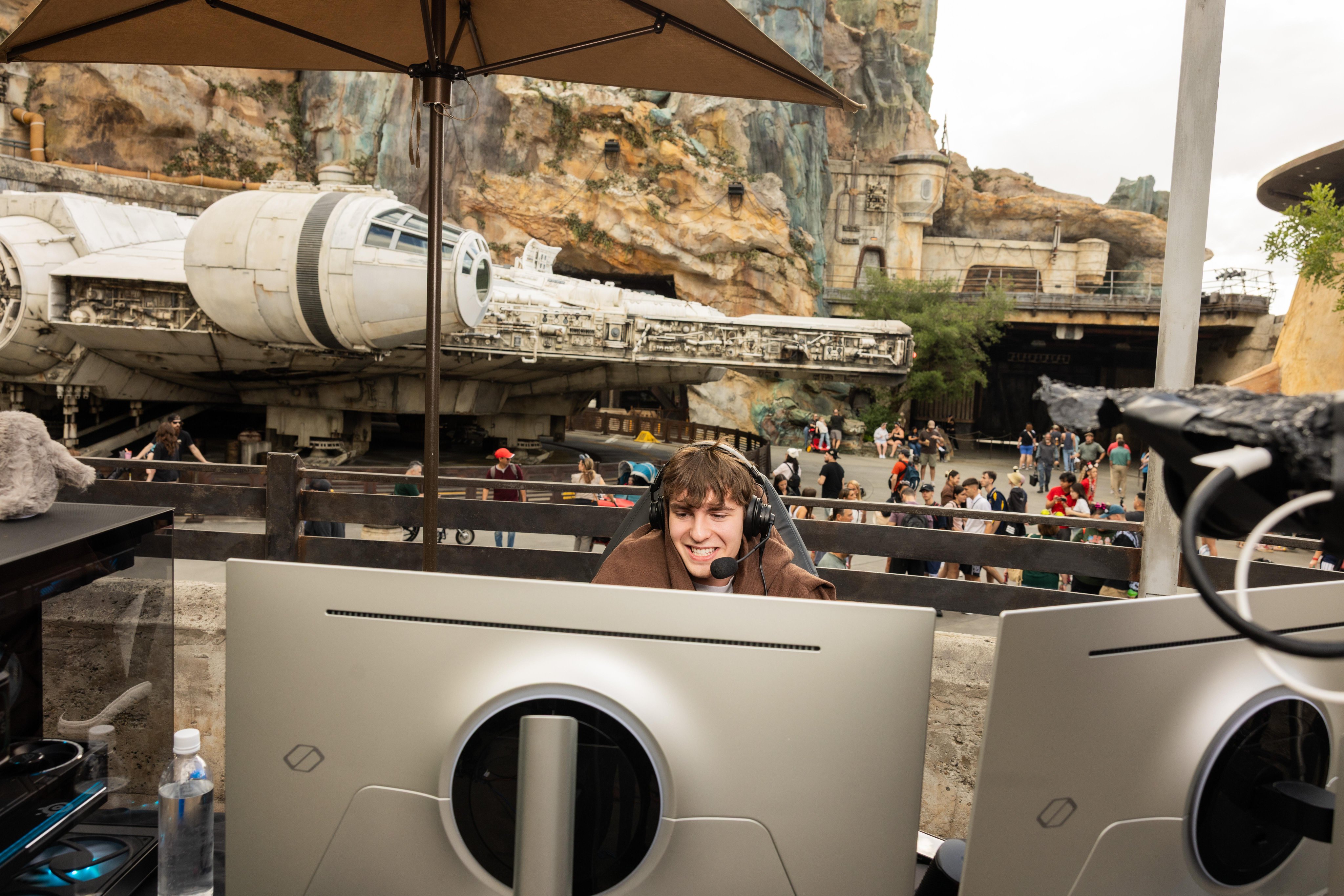 - Thousands of fans gathered around the see the professional gamer, as he interacted with Stormtroopers throughout Galaxy’s Edge.