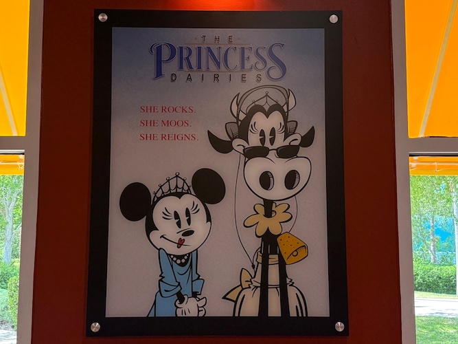Inside the seating area of the World Premiere Food Court, guests will find a number of parody posters inserting Mickey, Minnie, Donald, Goofy and their friends into a selection of Disney movies.