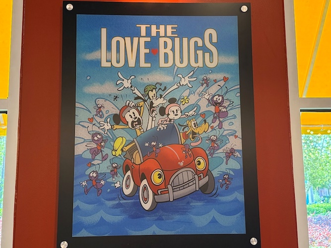 Prior to entering the World Premiere Food Court at Disney’s All-Star Movies Resort, guests are welcomed in red-carpet style by a new mural featuring characters in the style of the recent Paul Rudish created Mickey Mouse shorts.