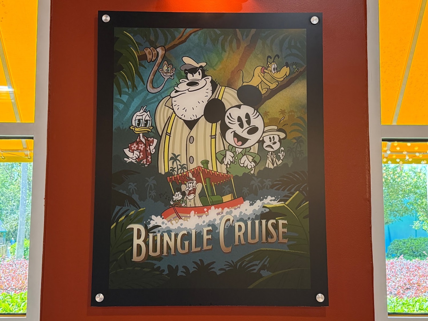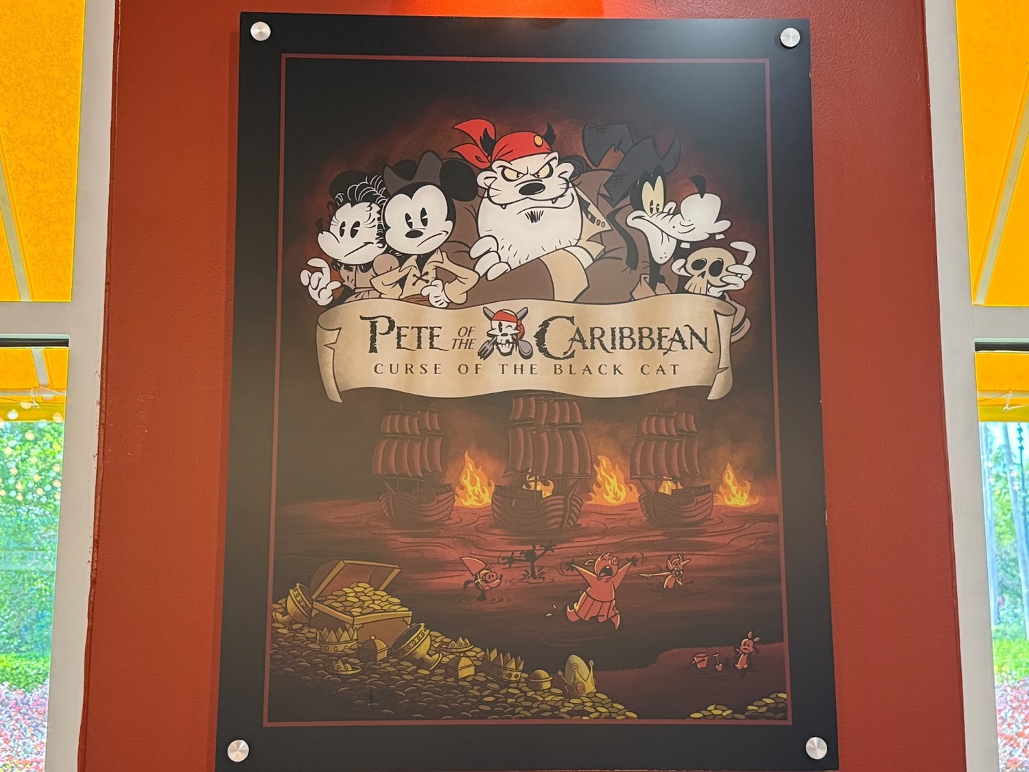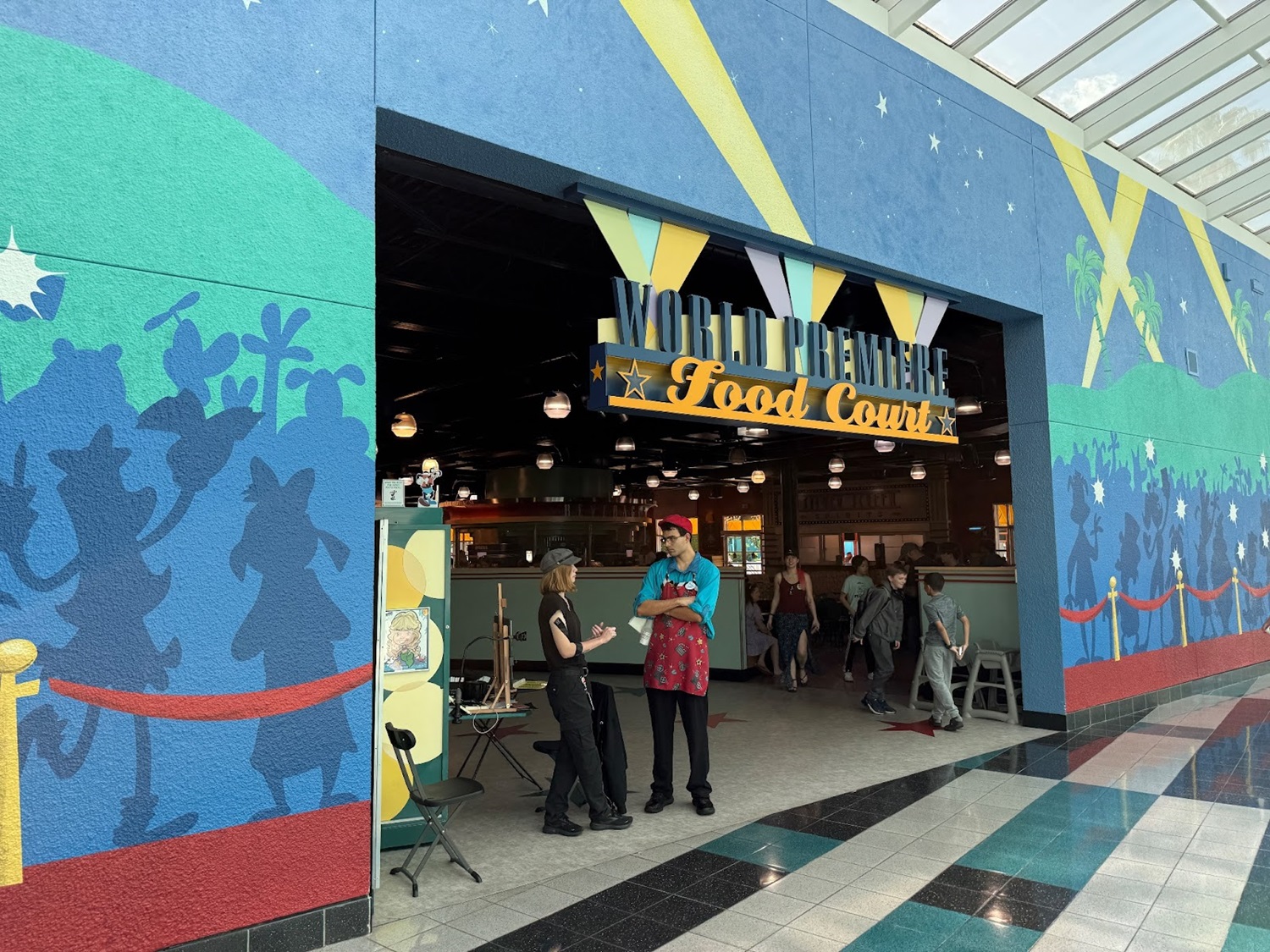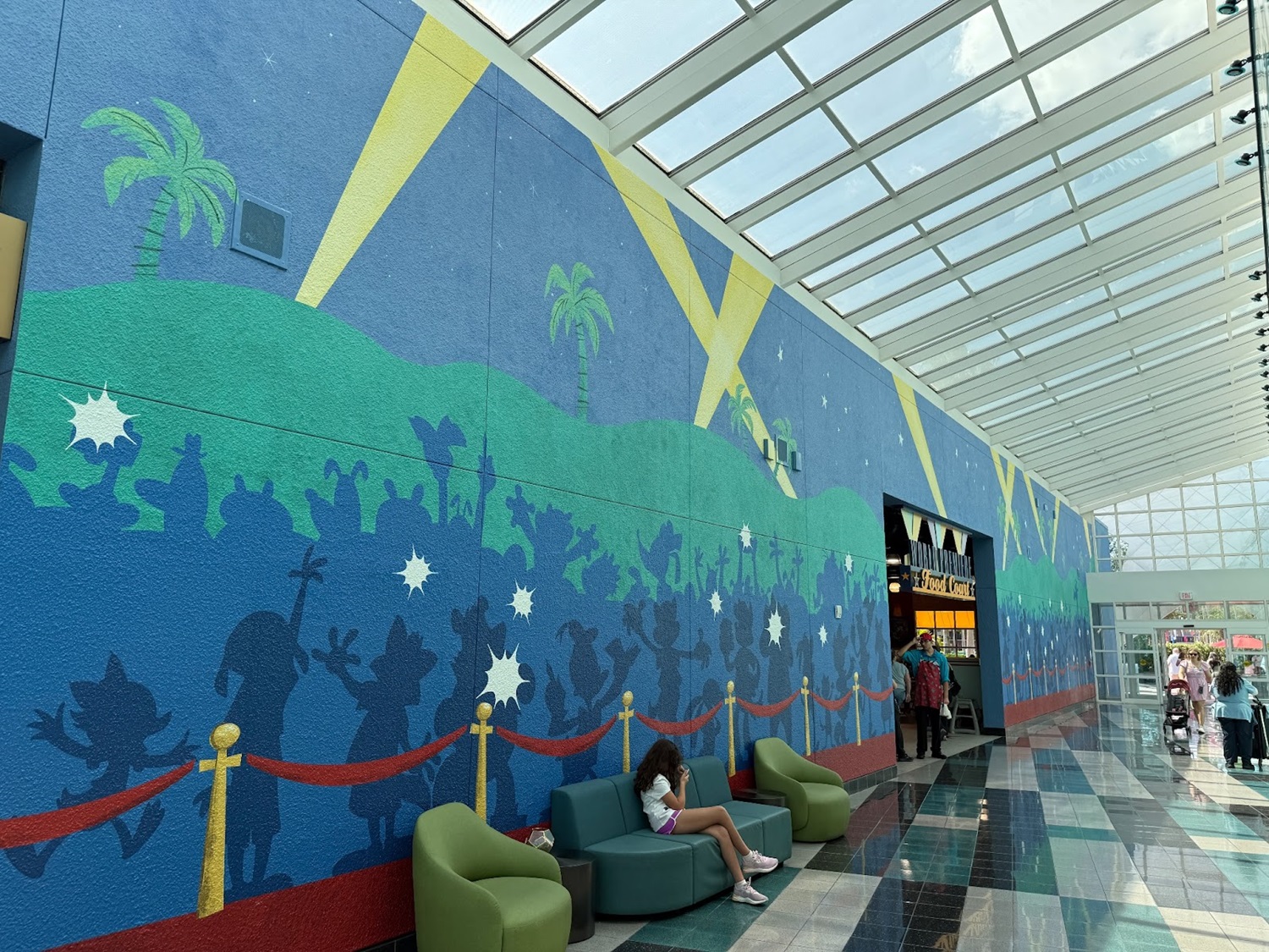 Prior to entering the World Premiere Food Court at Disney’s All-Star Movies Resort, guests are welcomed in red-carpet style by a new mural featuring characters in the style of the recent Paul Rudish created Mickey Mouse shorts.