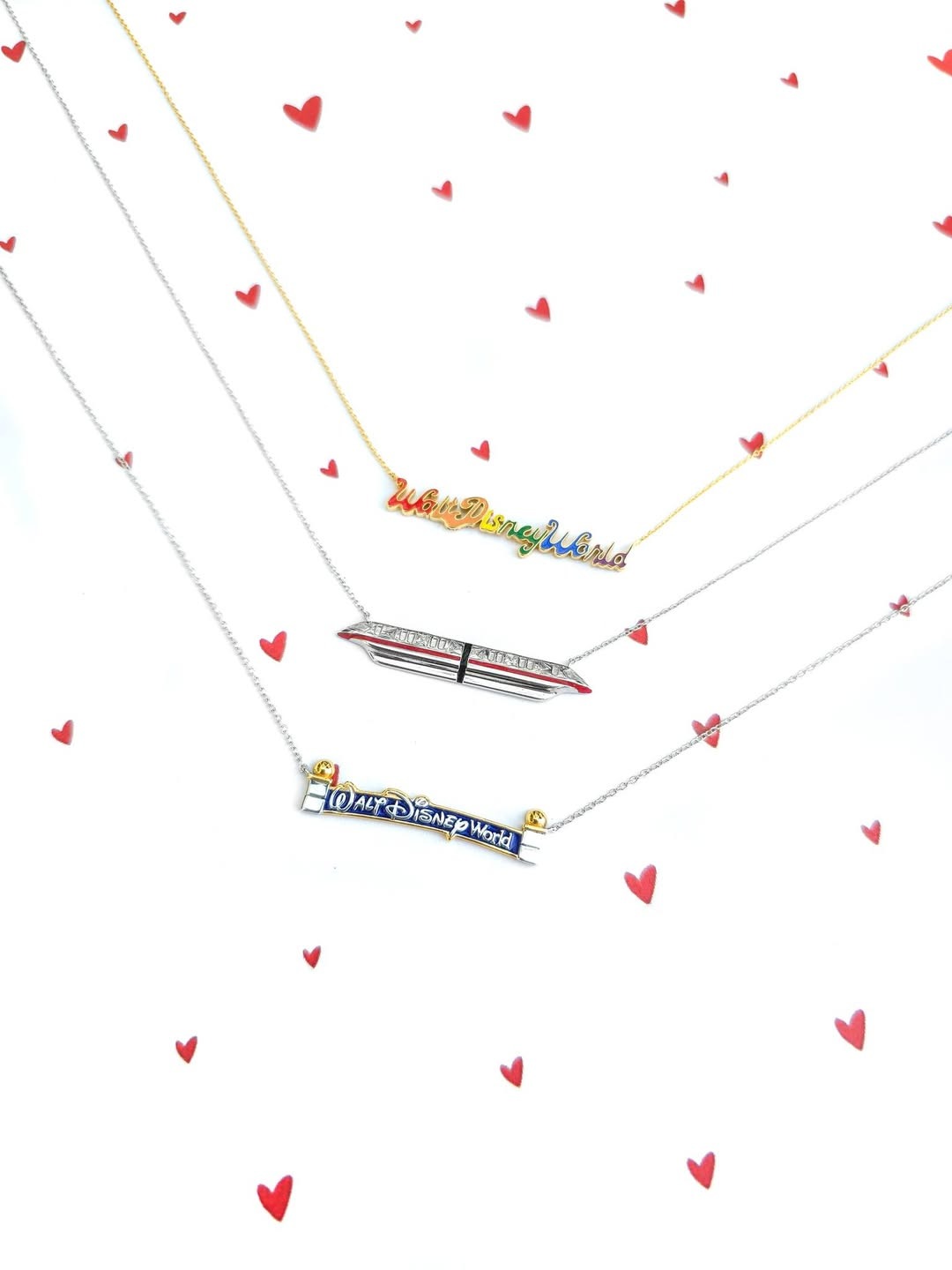 - When making the announcement on social media, Disney Springs and CRISLU shared pieces that feature the landmark Walt Disney World entry portal (that guests drive under when entering the Florida property) along with a monorail, and stylized “Walt Disney World” necklaces.