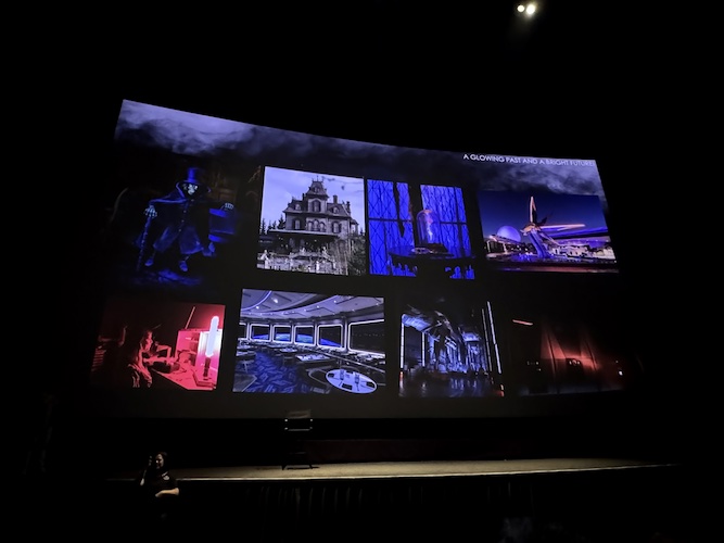 We also got a bit of Joesph’s own Disney Parks discography as it were, with footage and images from his Illusioneering mockups for Star Wars Galactic Starcruiser (that Holocron projection), the 2018 refurbishment of Phantom Manor at Disneyland Paris and theatrical enhancements in that stretching room, and even the preshow of Guardians of the Galaxy: Cosmic Rewind at EPCOT. The latter surely made some in attendance question whether or not they should be running to the doors on the right, hopefully opting to view the preshow as intended.