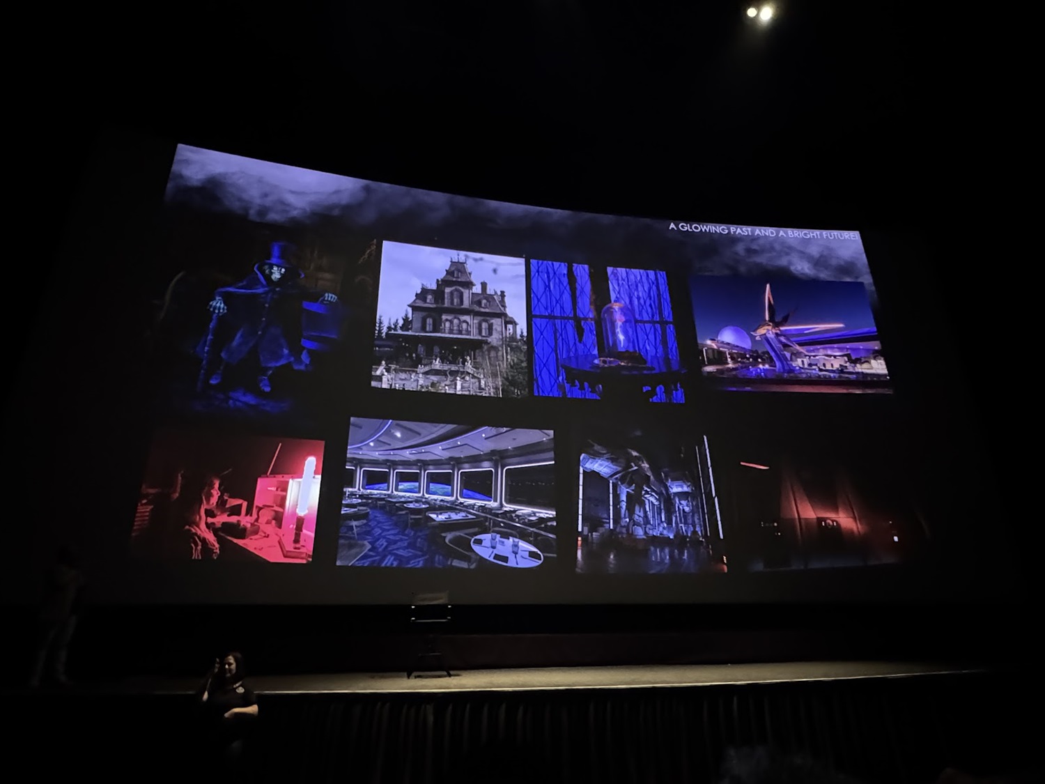 We also got a bit of Joesph’s own Disney Parks discography as it were, with footage and images from his Illusioneering mockups for Star Wars Galactic Starcruiser (that Holocron projection), the 2018 refurbishment of Phantom Manor at Disneyland Paris and theatrical enhancements in that stretching room, and even the preshow of Guardians of the Galaxy: Cosmic Rewind at EPCOT. The latter surely made some in attendance question whether or not they should be running to the doors on the right, hopefully opting to view the preshow as intended.