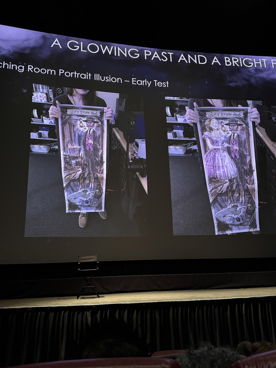 While that was discussed at length in the presentation, we also were shown a brief history of the aforementioned Gracey and his time at Walt Disney Imagineering. This also included about 45 seconds of footage from a pre-recorded talk from Gracey - an expert in crafting theatrical illusions and Joseph’s inspiration and mentor - explaining how a bent hub cap led to a warped color effect that was later implemented on Spaceship Earth at EPCOT (formerly in the mammoth scene as you ascend).