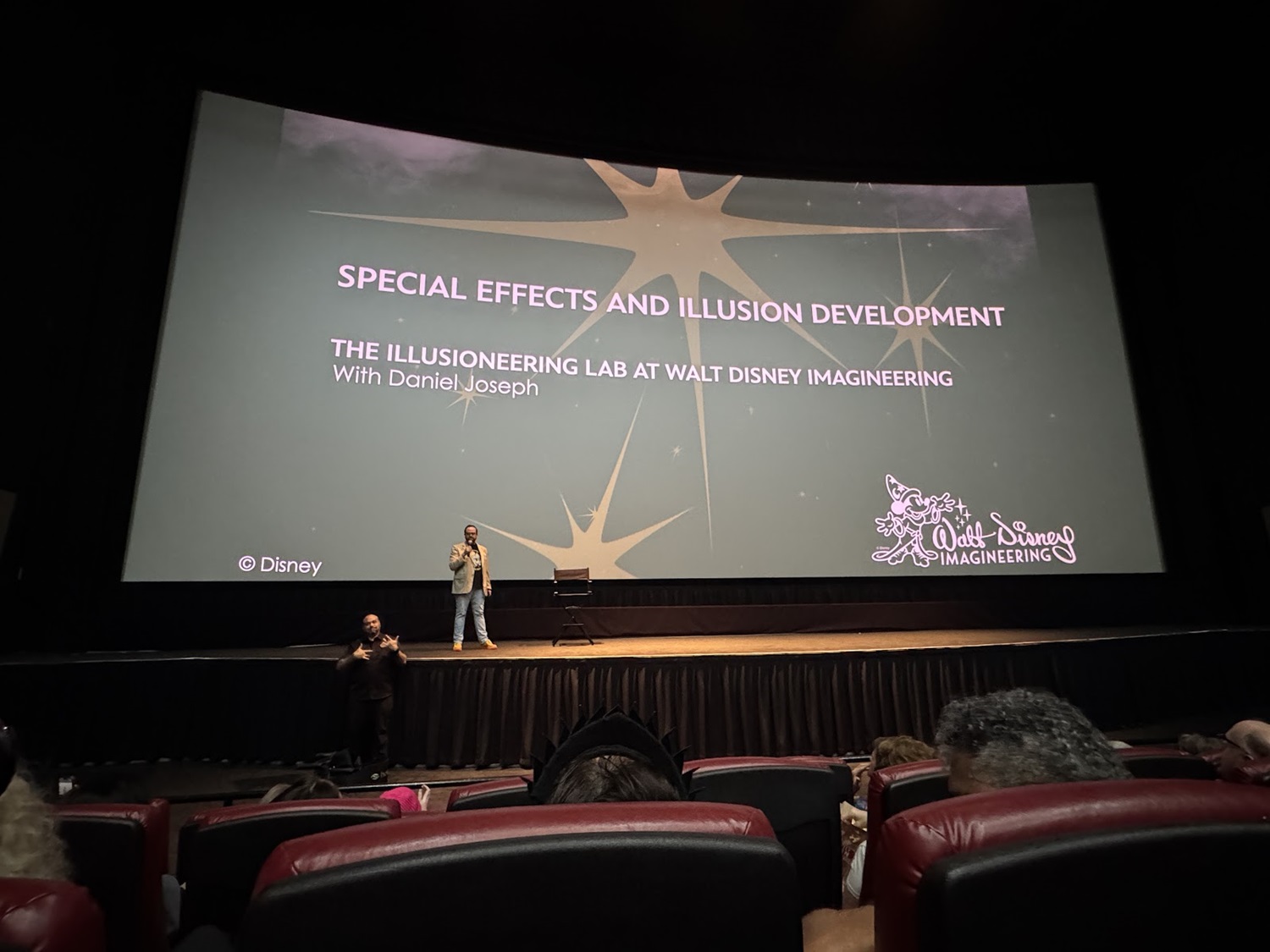 When originally announced, the event was promised to feature a panel discussion from Walt Disney Imagineering, offering an inside look at “Illusioneering" in attractions like the Haunted Mansion at the Disney Parks. So while not quite a close examination of the iconic parks attraction, pictures on the event credential, banner on the website, and more all leaned into the Haunted Mansion idea. Those in attendance were treated to a TEDTalk of sorts from Imagineer/Illusioneer Daniel Joseph. While the name might not be immediately recognizable, a number of D23 Gold Members are sure to have seen him before in various media and at previous other D23 events, where his big claim to fame was figuring out how to make Disney Legend Yale Gracey’s original design for the Hatbox Ghost at Disneyland’s original Haunted Mansion work - later installed at the park for the 60th anniversary in 2015 before being duplicated at the Walt Disney World attraction in 2023.