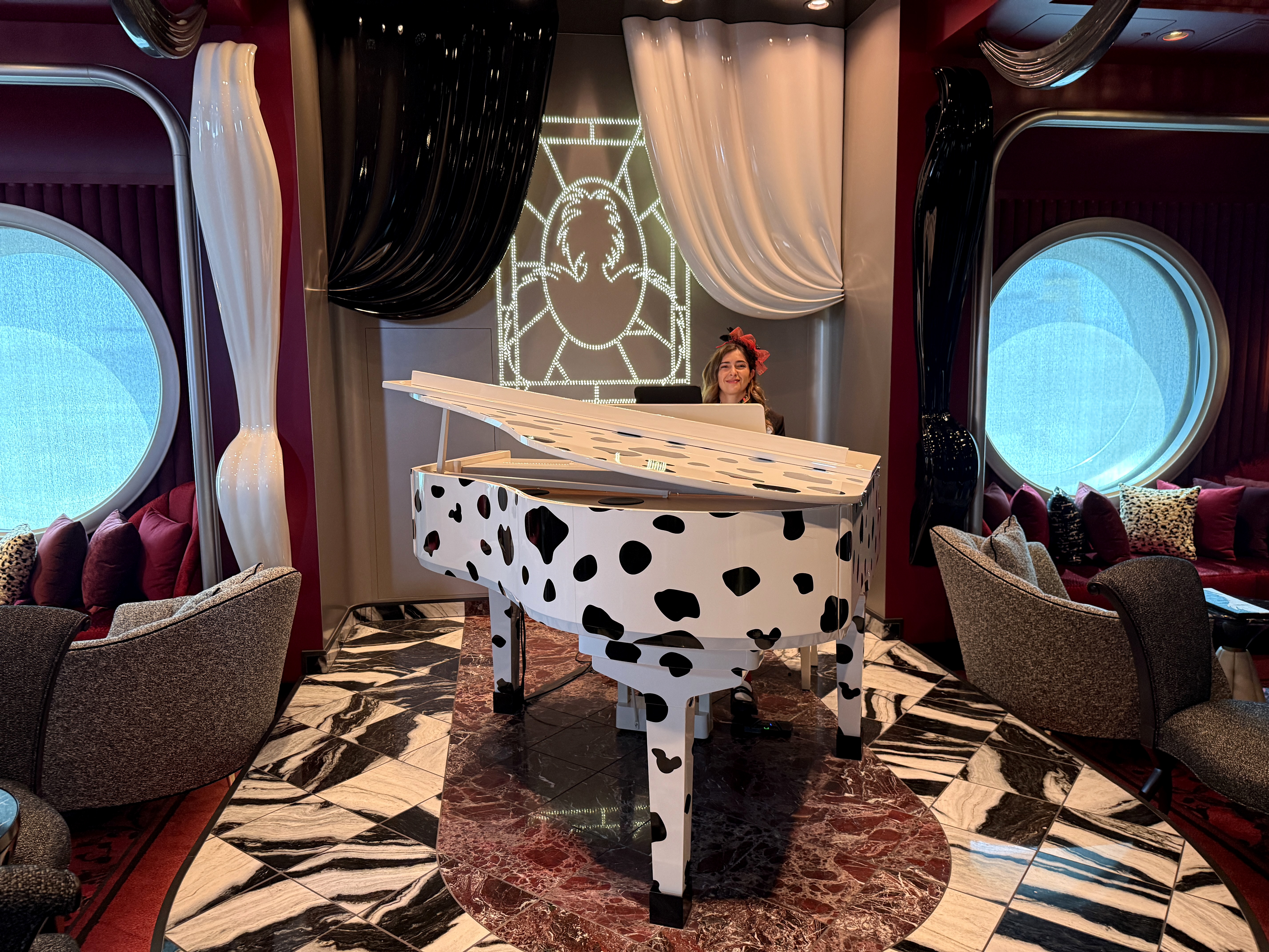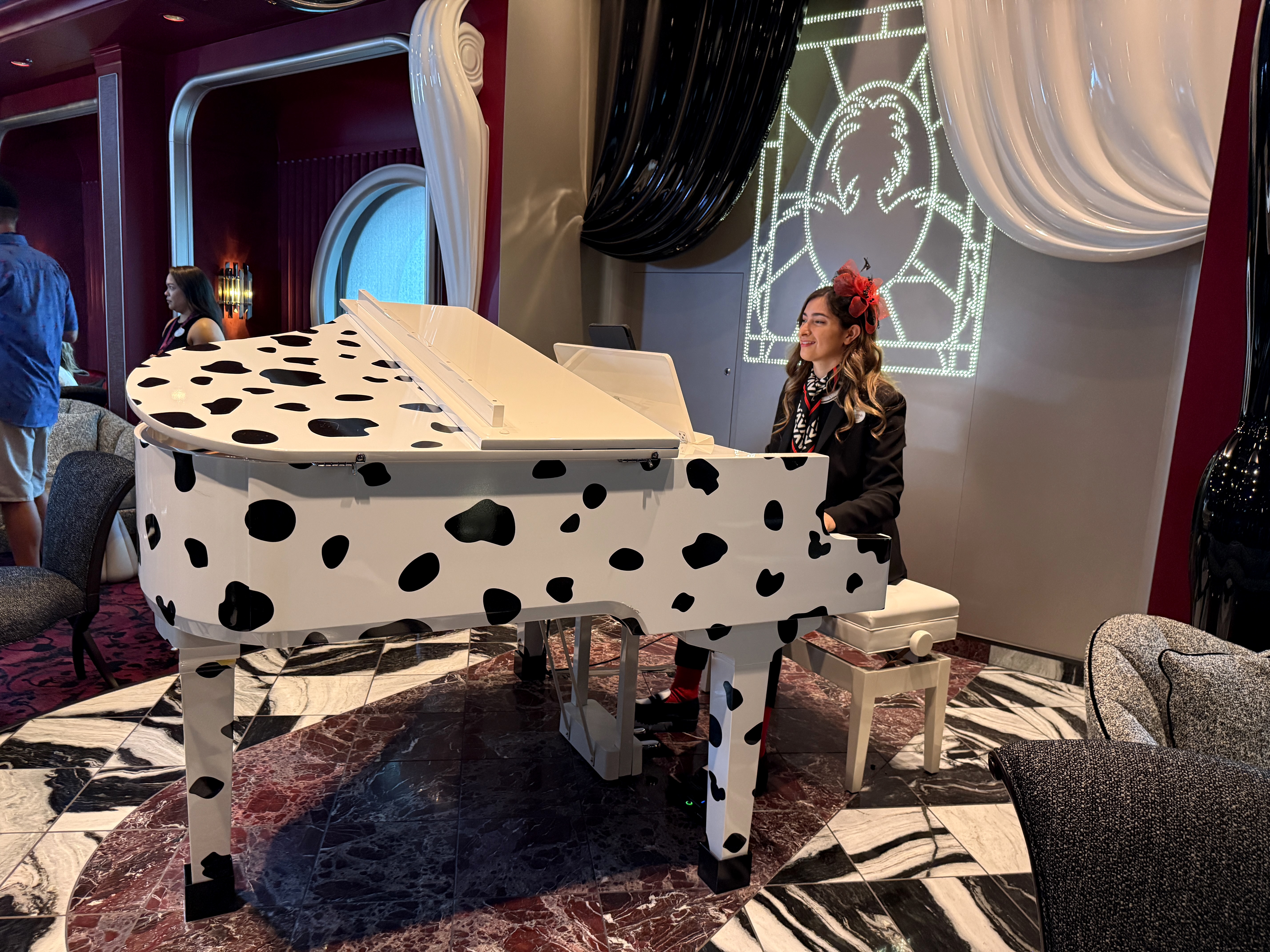 - De Vil's piano lounge will play home to two entertainment experiences aboard the Destiny: a fashion show (actually located just outside of the lounge so everyone can participate) moderated by Cruella herself, and a musical show that will highlight the piano-centric aspect of the space.