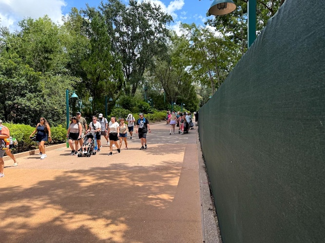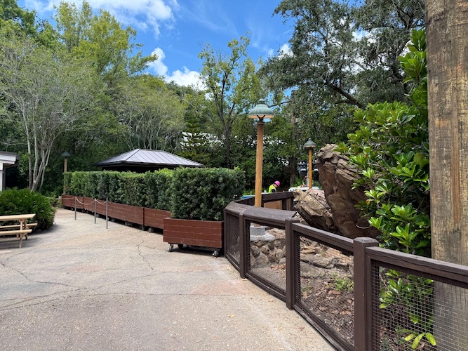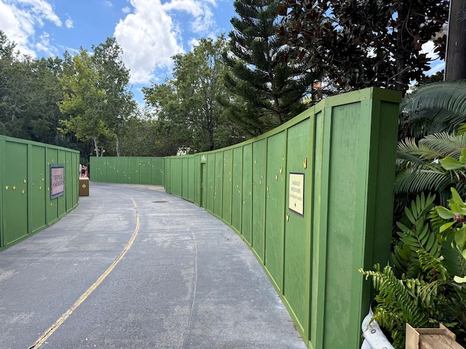 - The pathway and area that once housed a Wilderness Explorer location is also hidden behind construction walls.