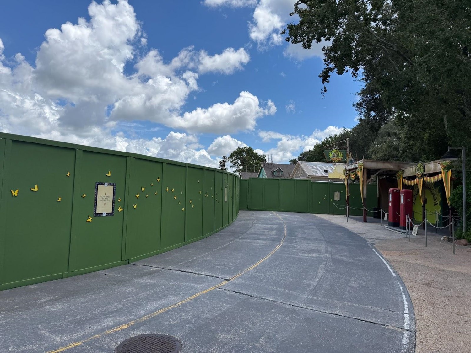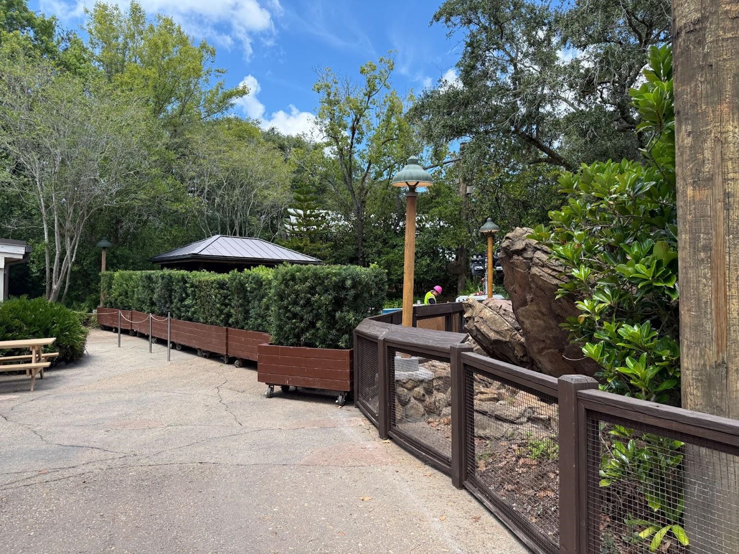 - The pathway and area that once housed a Wilderness Explorer location is also hidden behind construction walls.