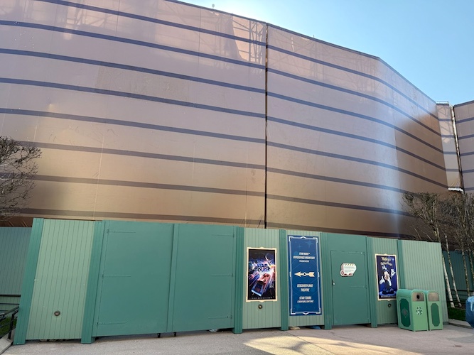 Elsewhere, walls surround Space Mountain for exterior work on the coaster, however, guests are still able to ride the attractions during this time.