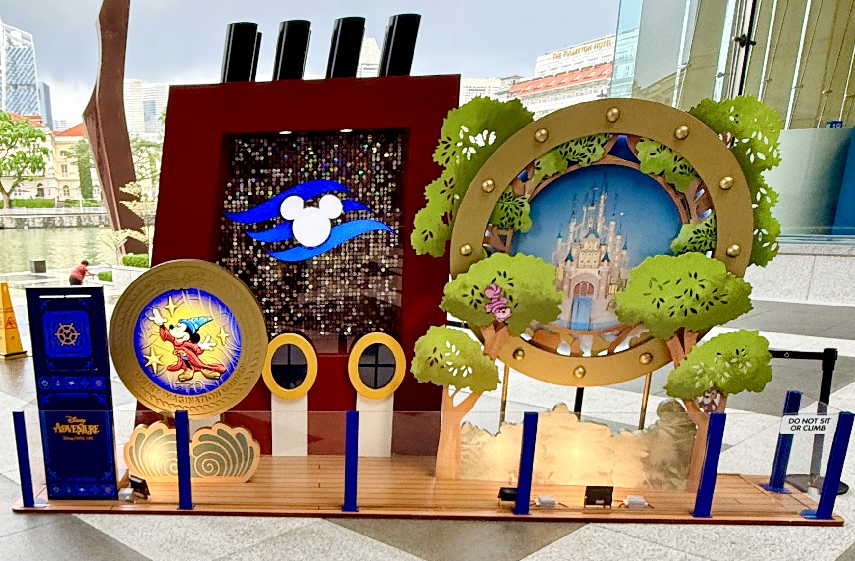 As we get ready for the maiden voyage of the new Disney Adventure, the newest and largest ship in the Disney Cruise Line fleet, all hands are on deck at the Singapore Changi Airport. There, displays featuring the new districts and neighborhoods of the massive ship - which will be homeported in Singapore for a minimum of five years - can be found throughout the airport and its terminals.