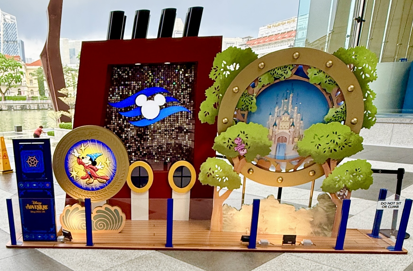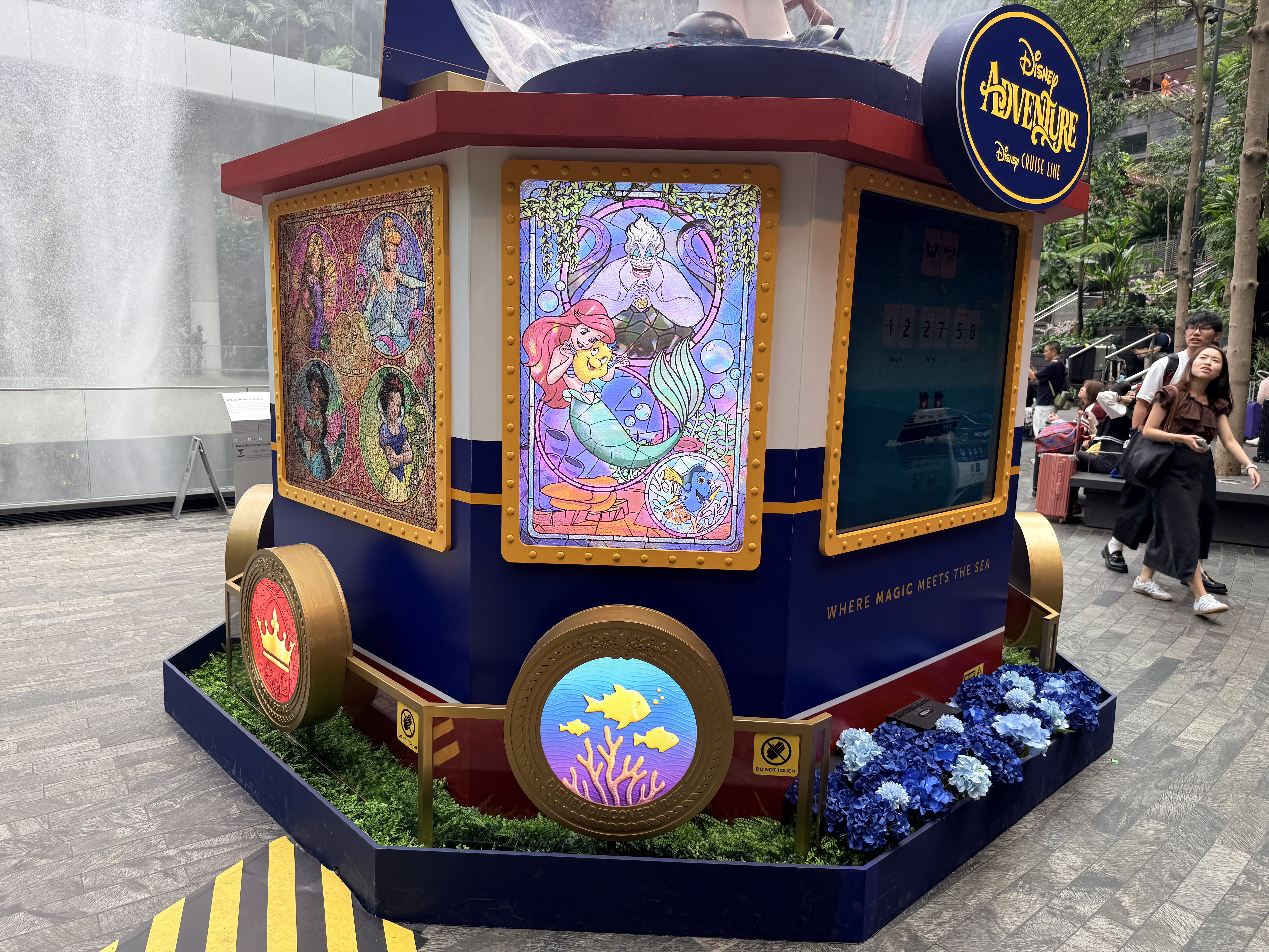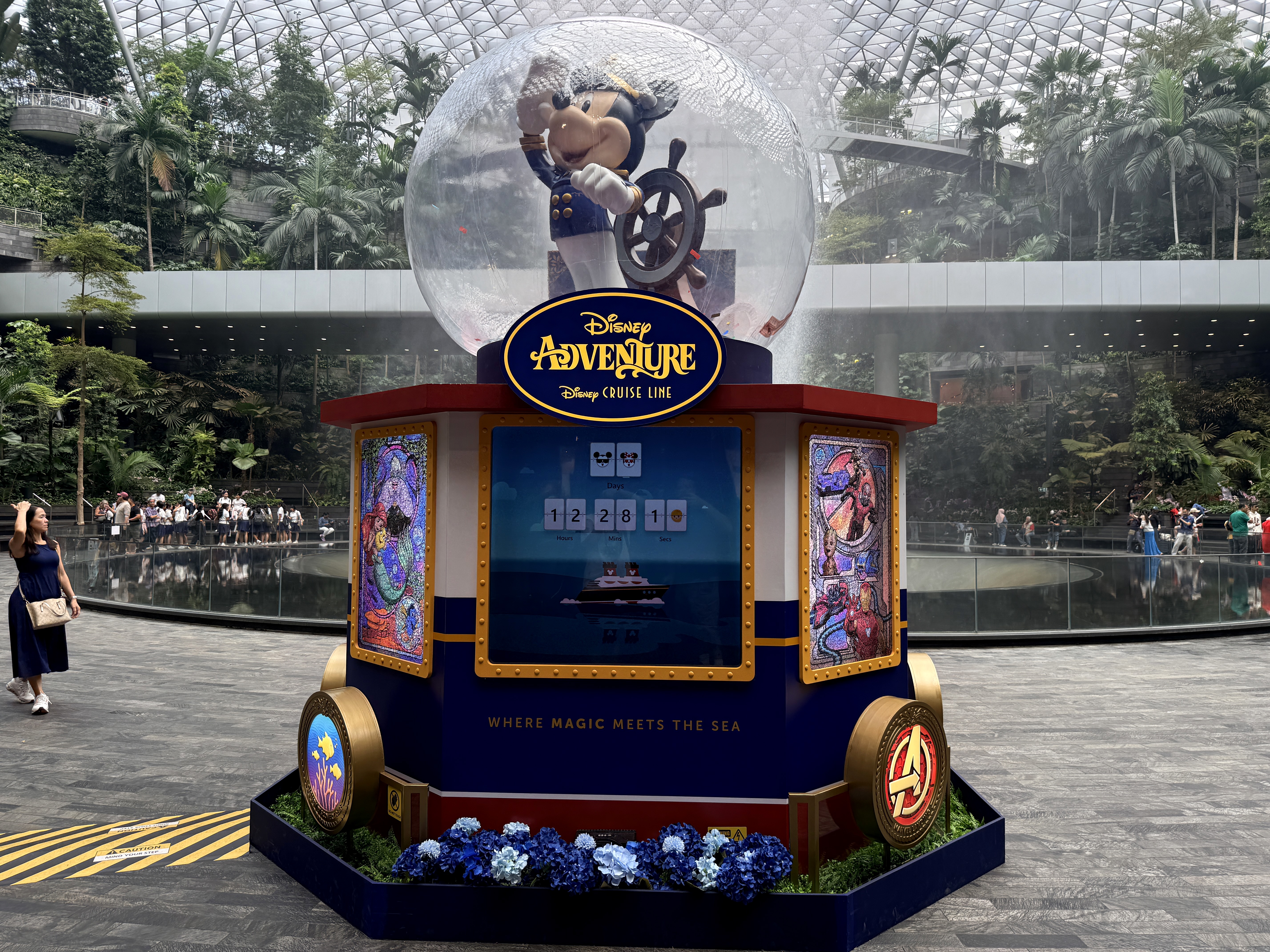 As we get ready for the maiden voyage of the new Disney Adventure, the newest and largest ship in the Disney Cruise Line fleet, all hands are on deck at the Singapore Changi Airport. There, displays featuring the new districts and neighborhoods of the massive ship - which will be homeported in Singapore for a minimum of five years - can be found throughout the airport and its terminals.