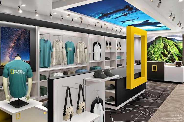 - Elsewhere on the ship, the National Geographic Store will open its doors at sea, offering a line of exclusive co-branded merchandise. Made with quality and designed with iconic imagery, these official National Geographic and co-branded Disney Cruise Line merchandise items include shirts, hats, bags, and more.