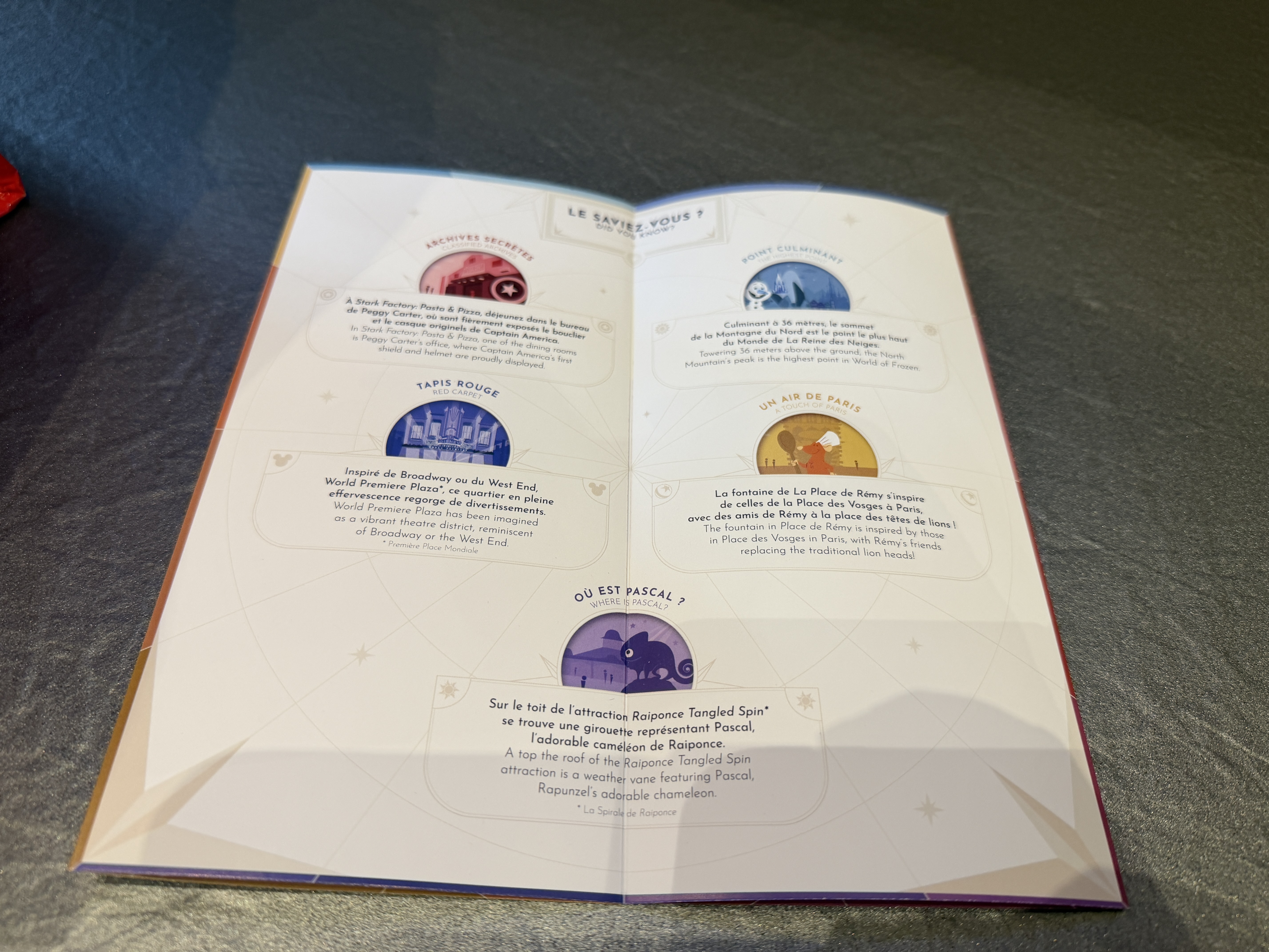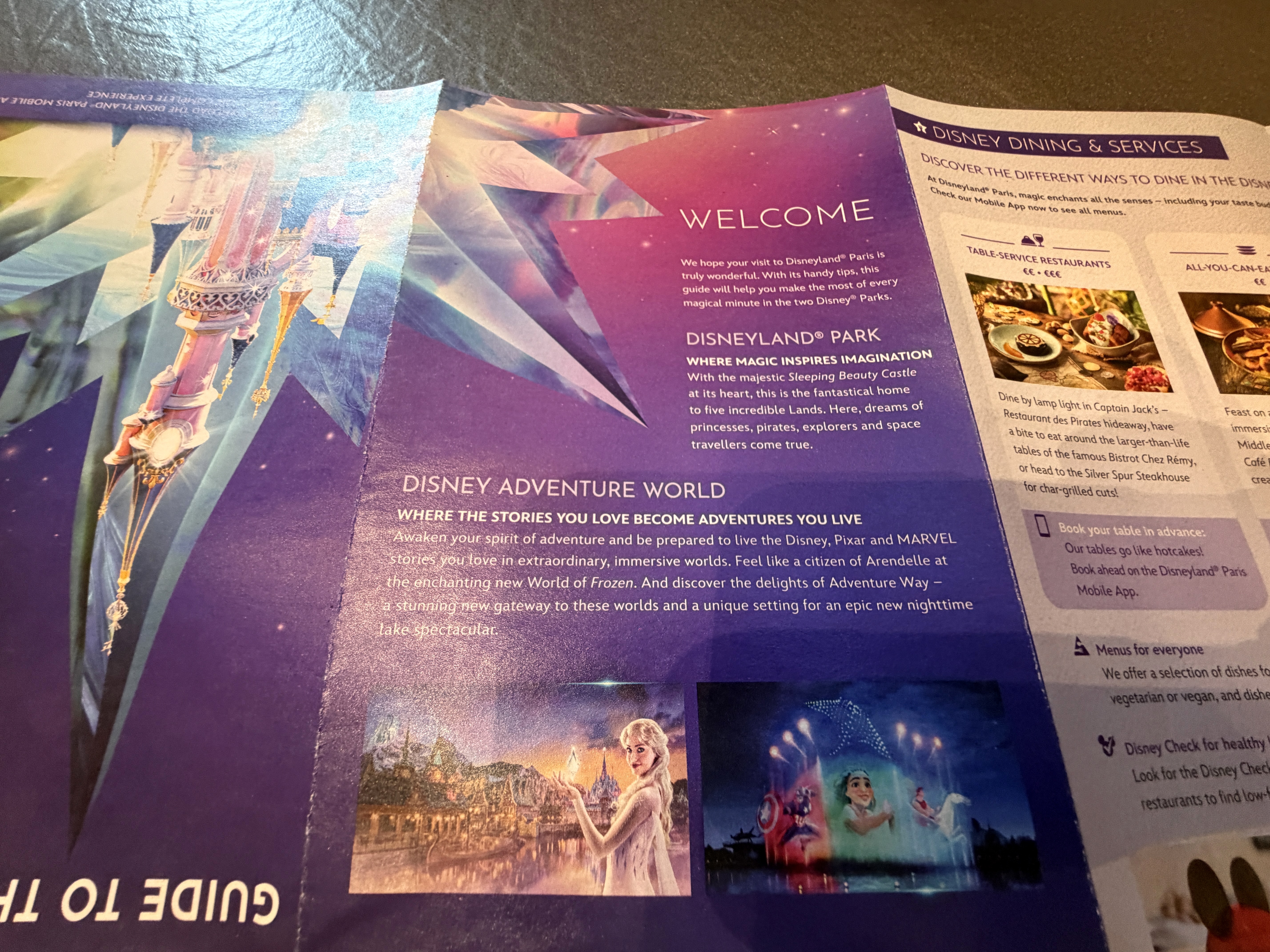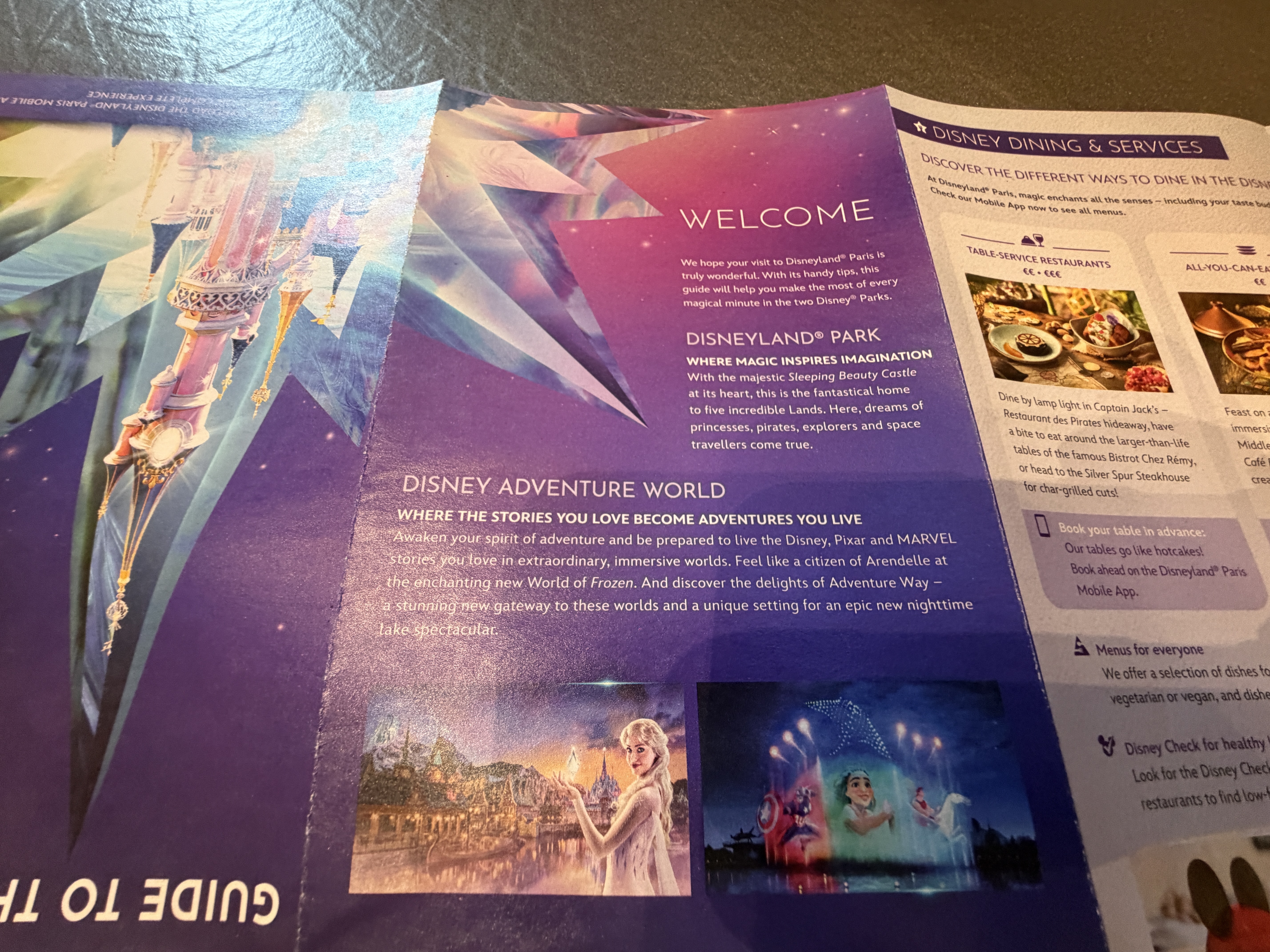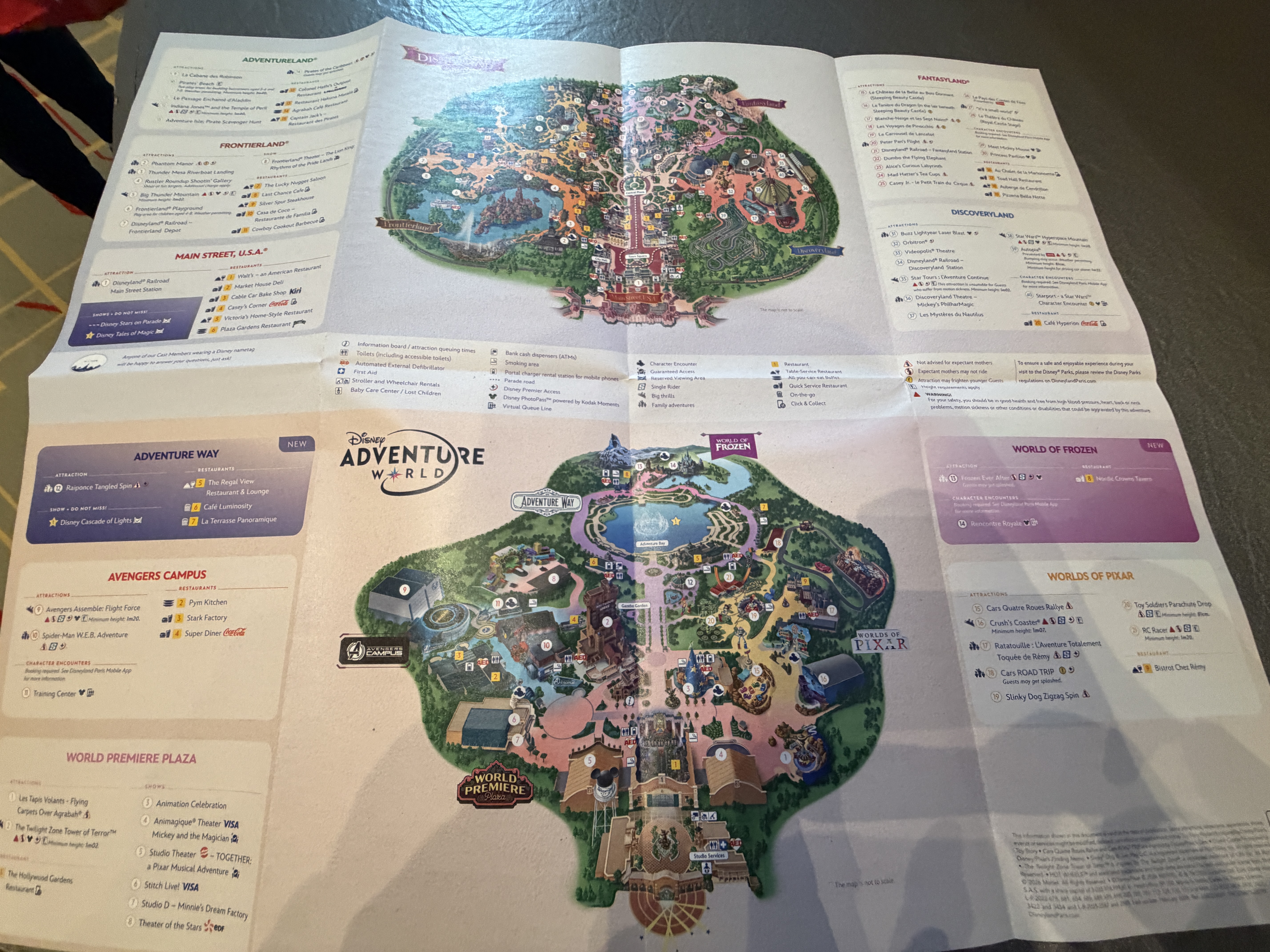 As is the case with the Disneyland Paris guidemaps, both parks are featured on one single sheet, along with the attractions, restaurants, entertainment, and more.