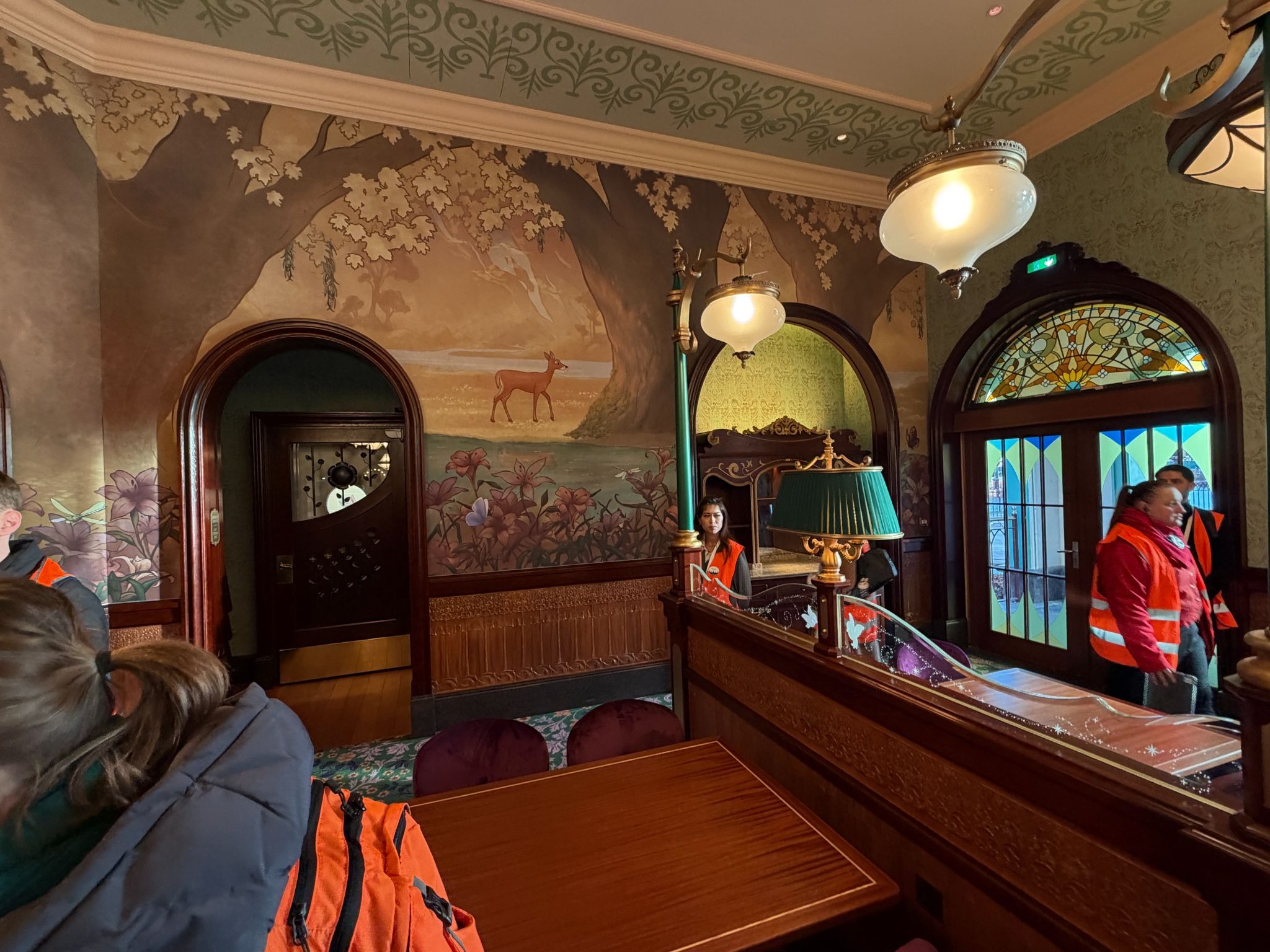- The lounge includes the first-ever bar inside either Disneyland Paris park, decorated in royal blue with a gold-accented wooden bar.