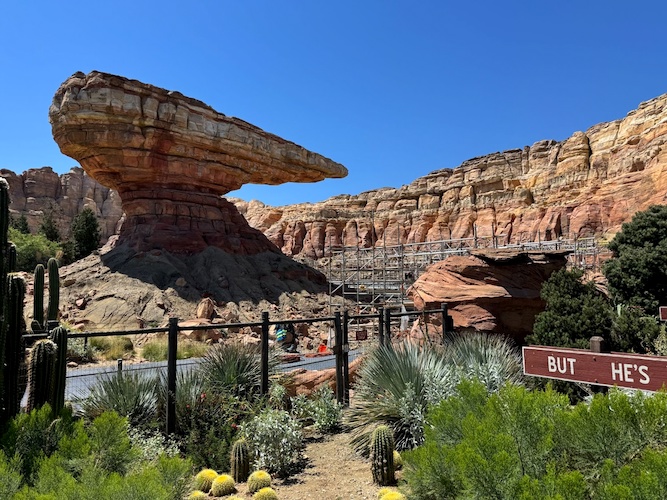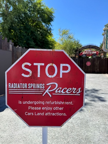 - Just next to Avengers Campus, Cars Land’s Radiator Springs Racers is currently down for refurbishment.