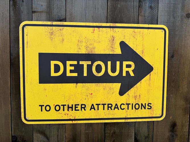 - The fence surrounding the entrance also featured some cute roadsign theming for guests passing by the attraction’s entrance.