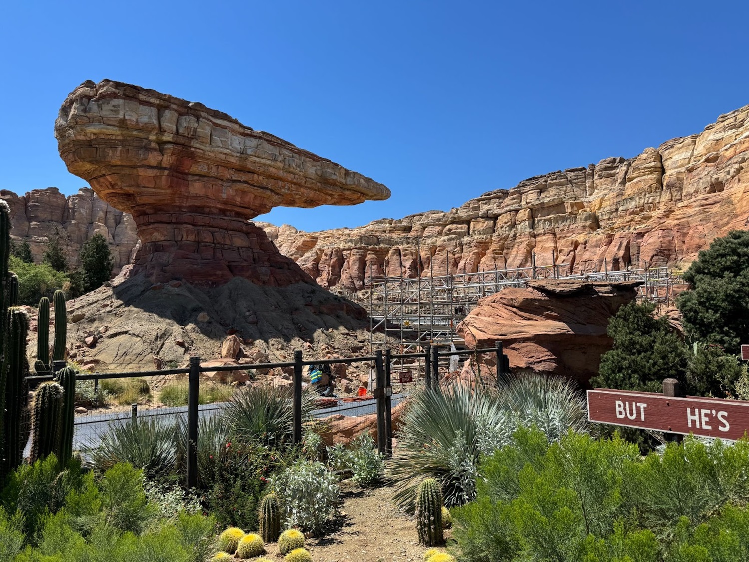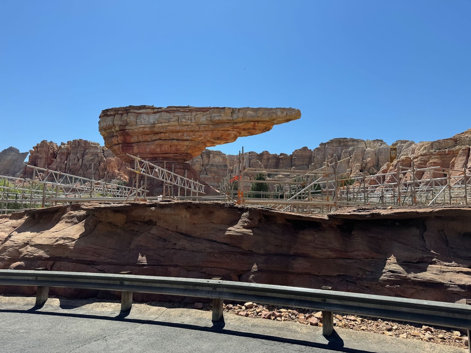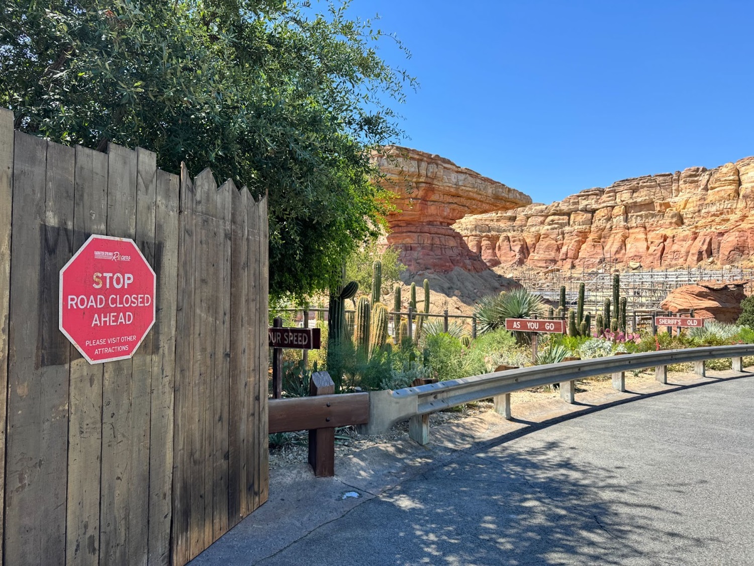 - Just next to Avengers Campus, Cars Land’s Radiator Springs Racers is currently down for refurbishment.