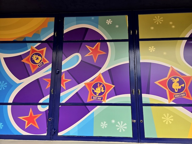 - As such, the new window decor features silhouettes and stars with the classic characters within, including Mickey Mouse, Minnie Mouse, Donald Duck and others.
