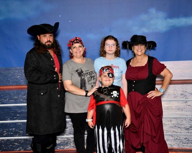 - Anthony DiDonato, 17, from Colorado, loves cruising and enjoyed his first time on a Disney Cruise Line ship. Anthony’s younger sister Aubrey, 10, said that Anthony was “really happy" during the sailing, adding that “he loves spending time with his family." Anthony, Aubrey, their parents, and members of their extended family donned pirate garb for the Pirates in the Caribbean deck party, where they danced in the glow of fireworks over the upper decks.