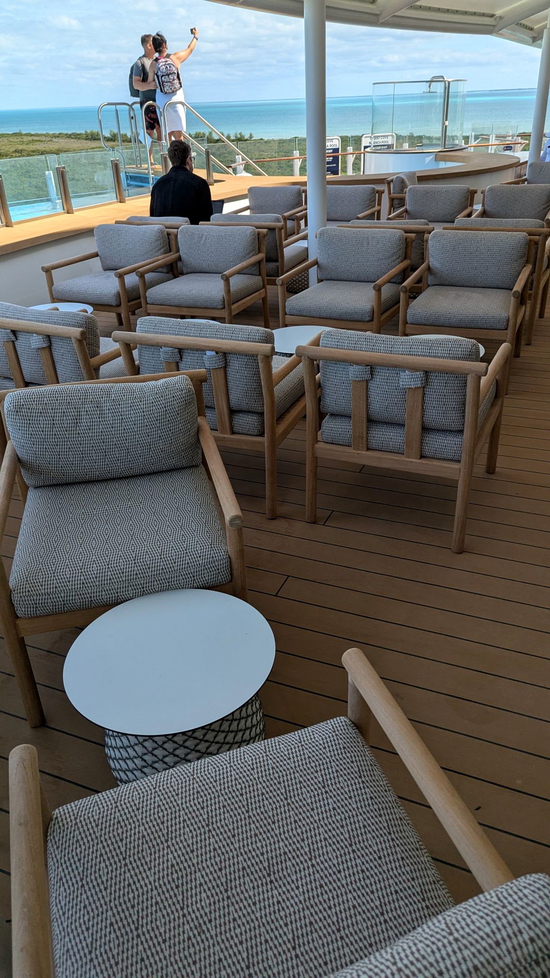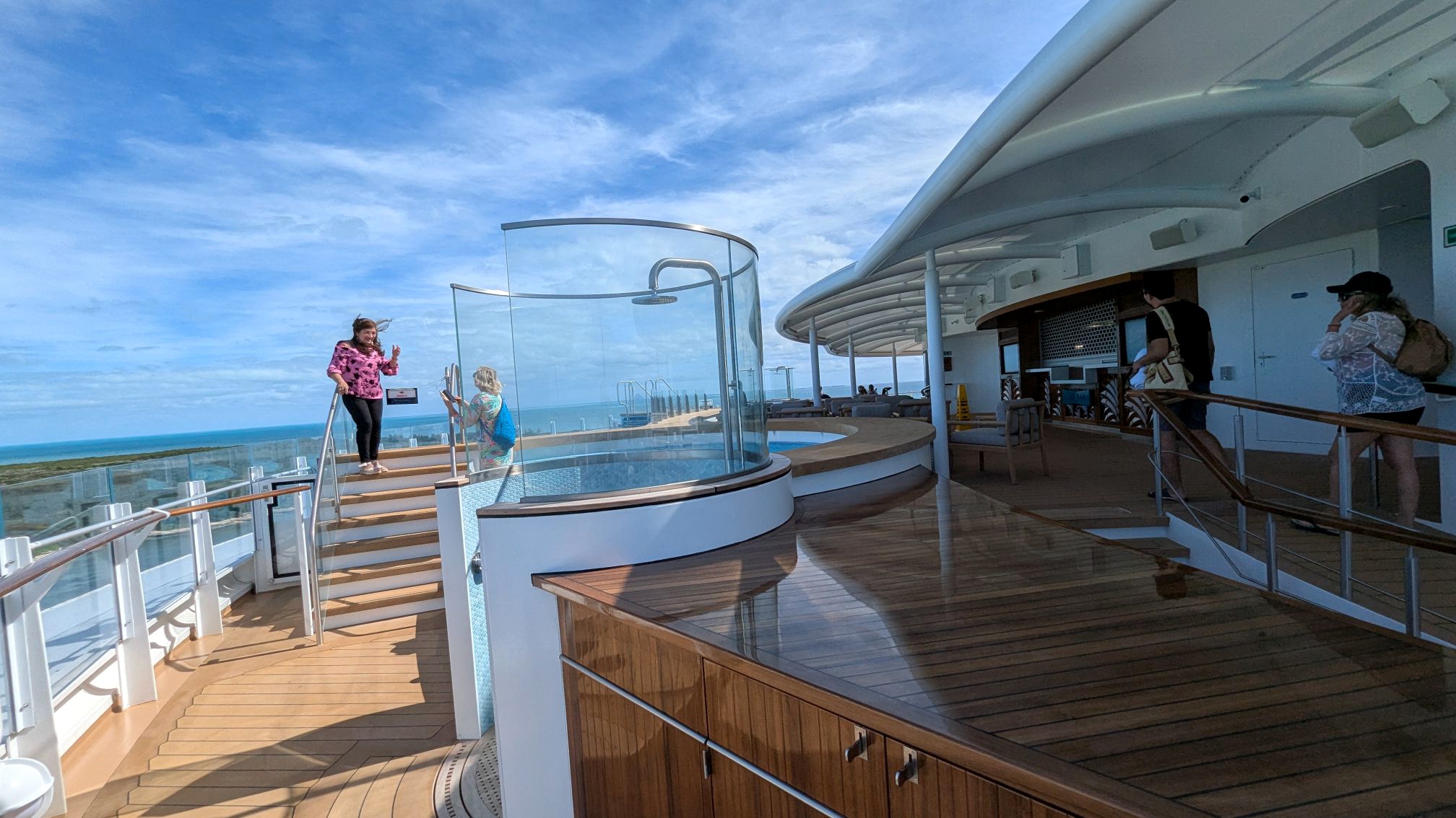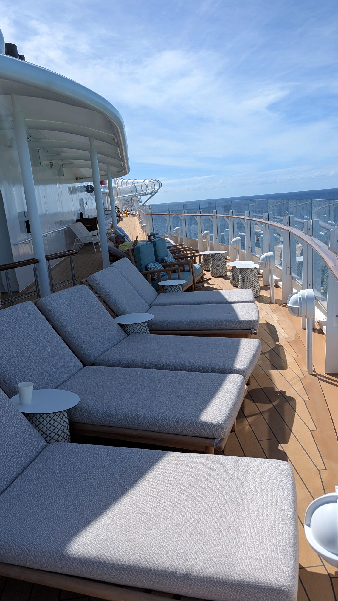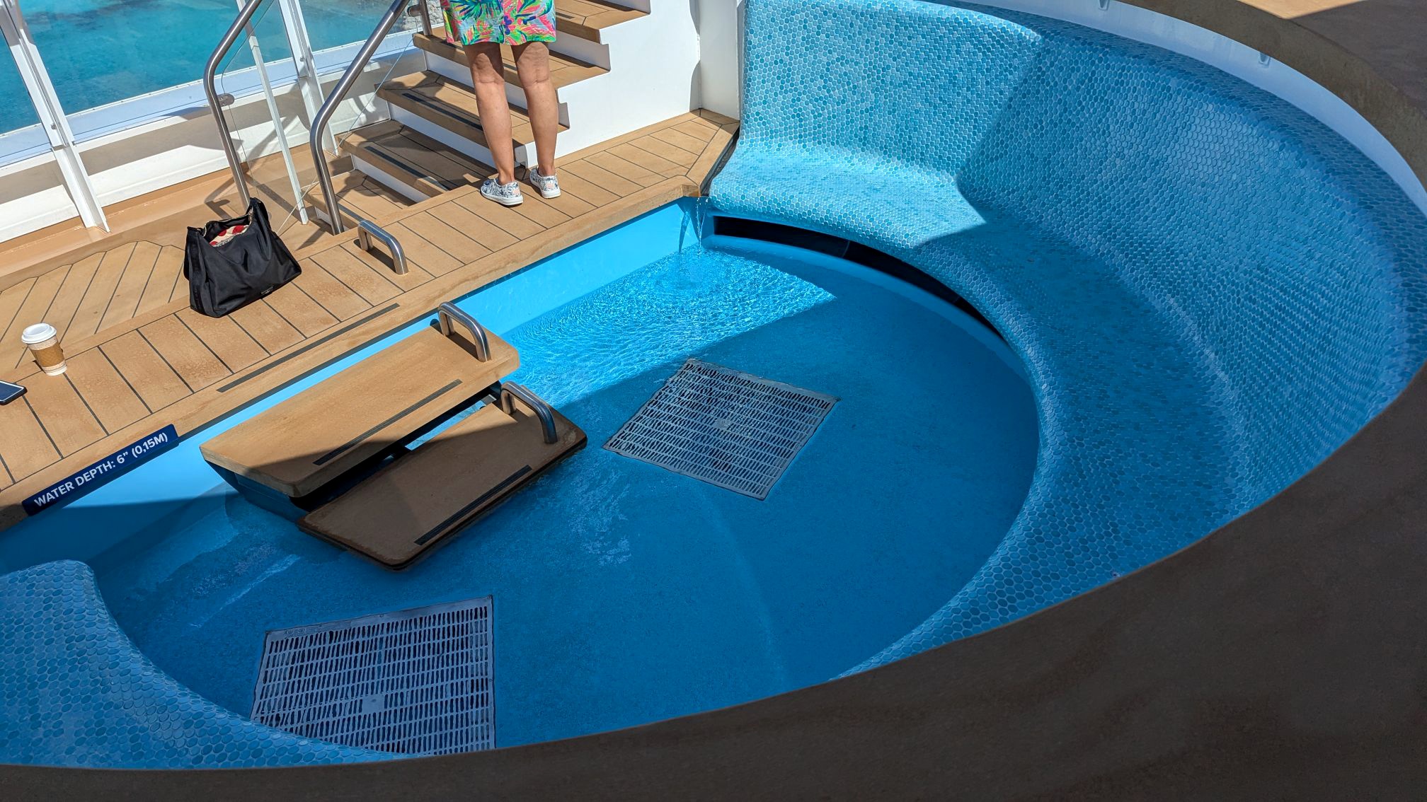 Below you can check out Doobie's photos from the Disney Destiny's adults-only outdoor areas, pools, and the adjacent Cove Cafe, which features Moana-themed artwork.