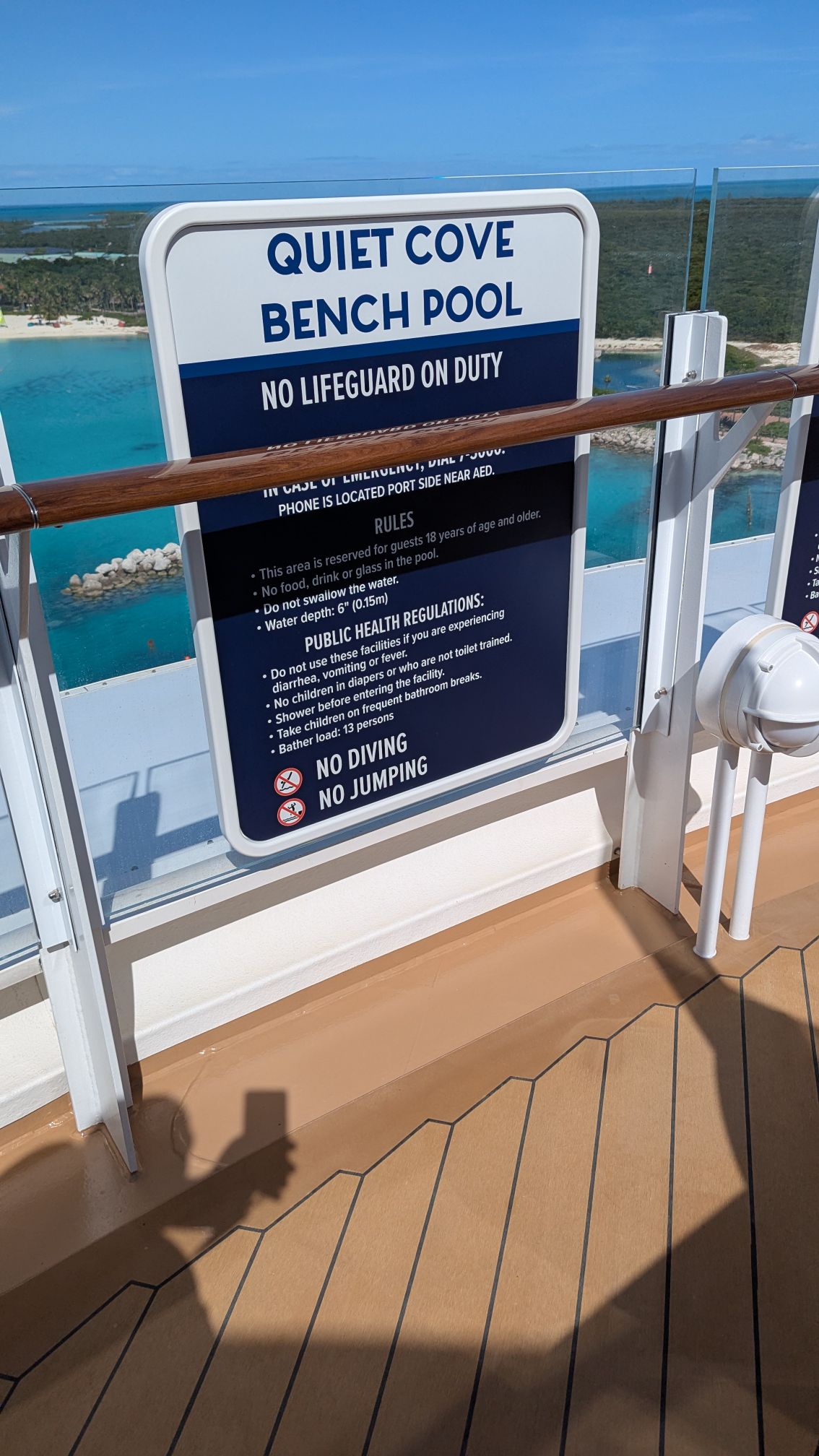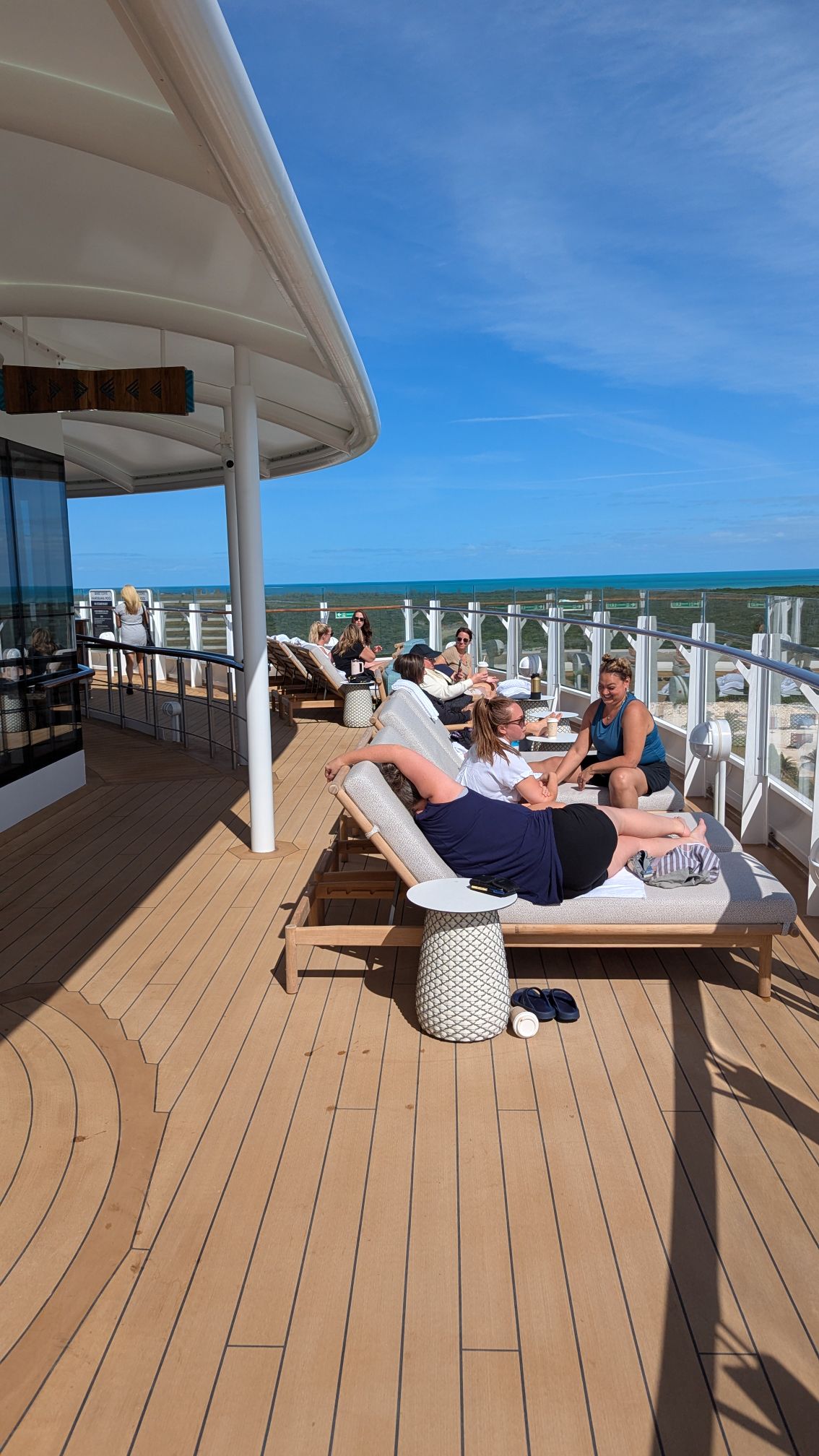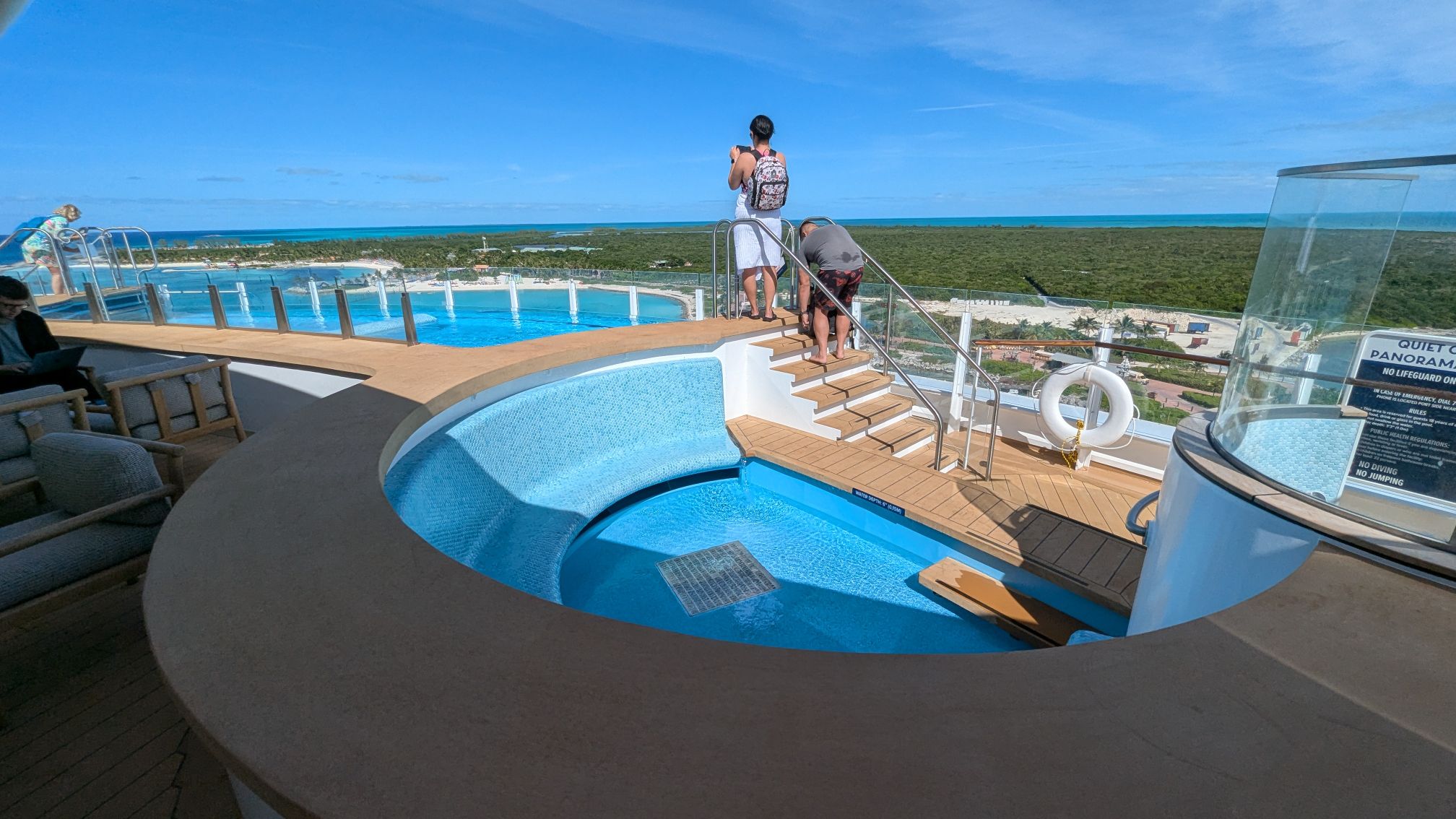 Below you can check out Doobie's photos from the Disney Destiny's adults-only outdoor areas, pools, and the adjacent Cove Cafe, which features Moana-themed artwork.