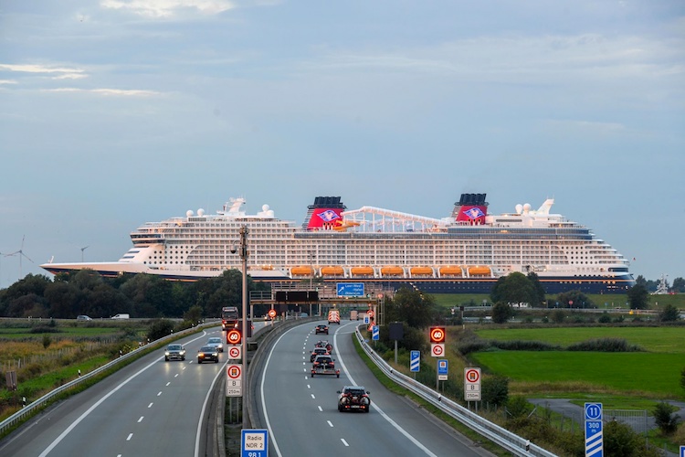 The Disney Destiny will travel 20 miles down the Ems River and back as it begins the conveyance process.