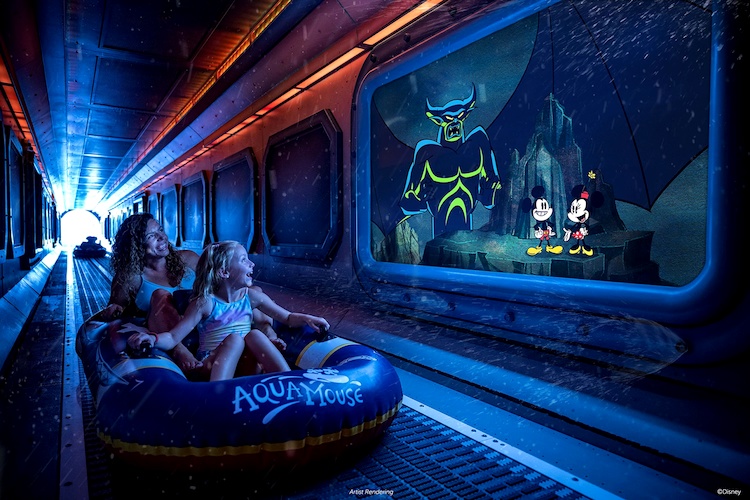 - More villains can be found on the AquaMouse. While we knew Chernabog would be featured, we now know that Mickey and Minnie’s ascent up to Villain Mountain in this version of the AquaMouse - “Sing A Silly Song" - will also feature Scar and the Queen of Hearts.