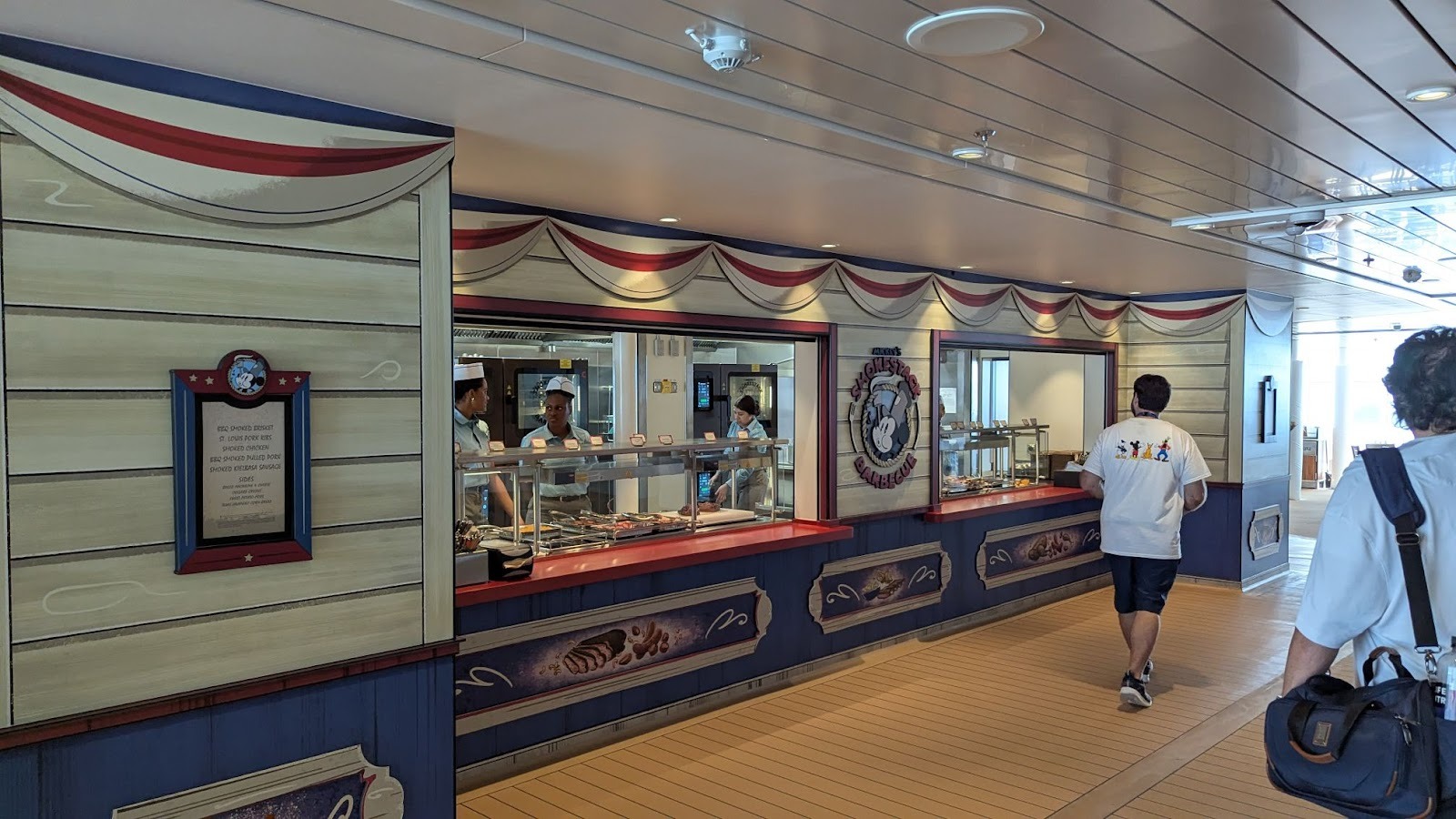 While a grill with burgers and such is featured on the other Disney Ships under various names, the Disney Destiny (and her sisters) also feature Mickey’s Smokestack Barbecue in this area, which has fast become a favorite of many cruisers, complete with sauce bar. St. Louis Ribs, Kielbasa Sausage, Roast Chicken, Macaroni and Cheese, and more all available to pick up - and again, included as part of your cruise fare.