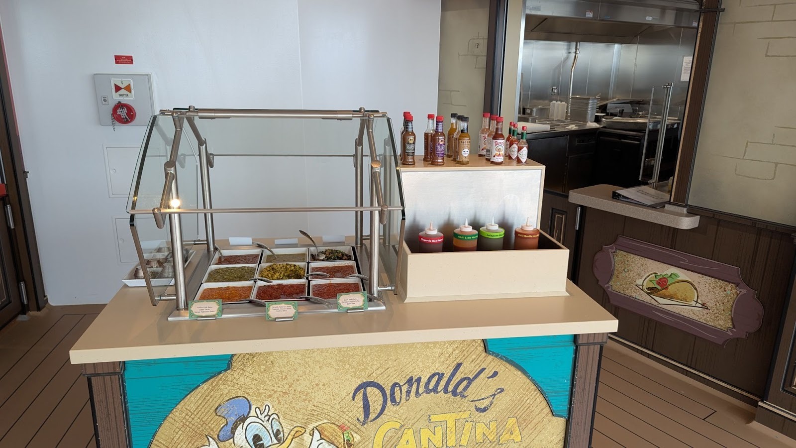 Nearby is another stand-out since its debut that has become so popular, it has been replicated on Dream Class ships, though under a different name. Donald’s Cantina has become a must-see favorite offering up tacos, burritos, and bowls in a build-your-own fashion with beef, chicken, pork carnitas, rice, beans, and/or fajita veggies and other ingredients. Not to mention the nearby salsa bar to top everything off!
