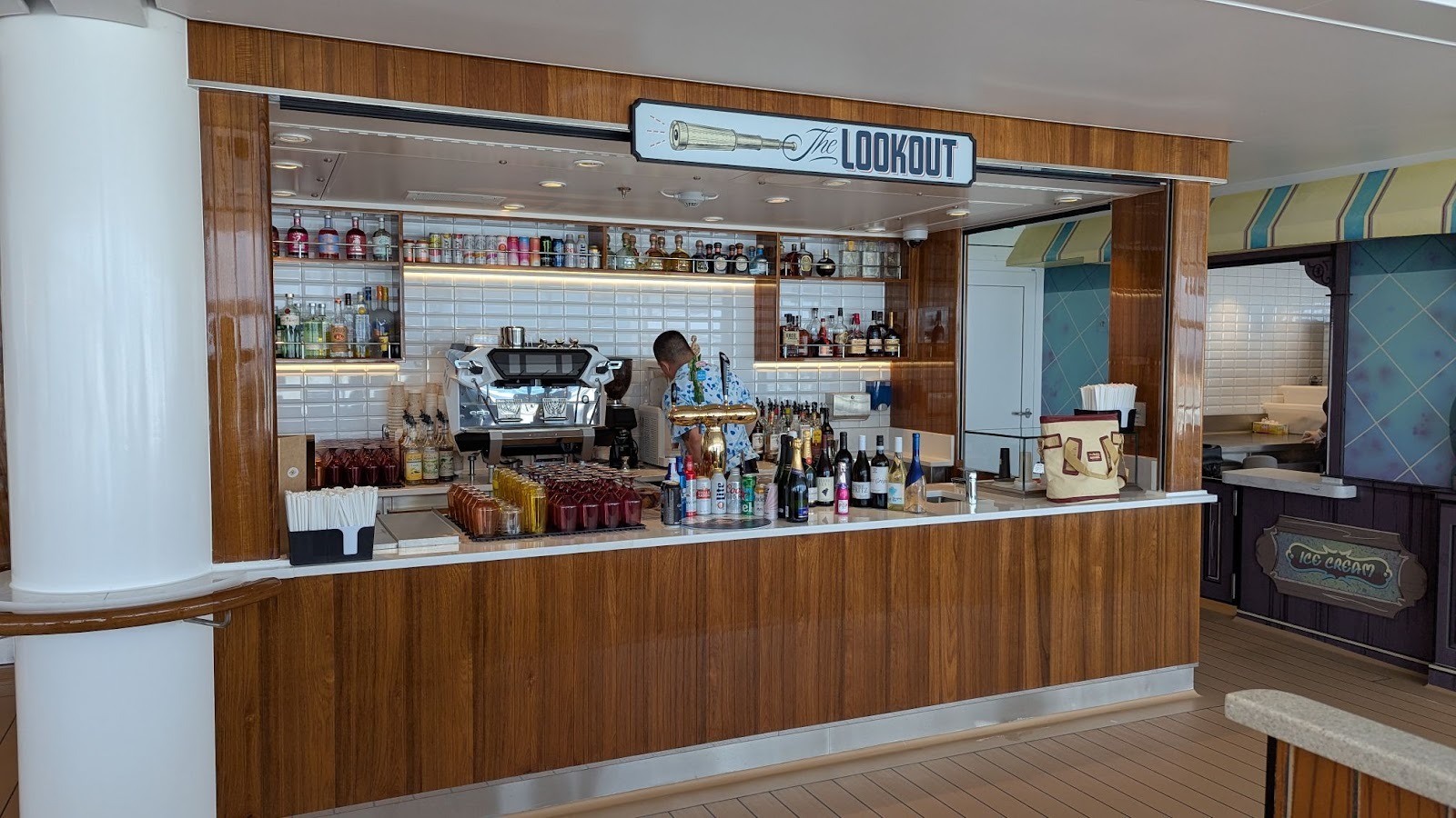 Looking for a more adult beverage? Nearby you’ll find the Lookout bar. Note that if you’d like a soda or soft drink from this location, you will incur an extra cost. Our advice: take a few steps and head to the included drink station.