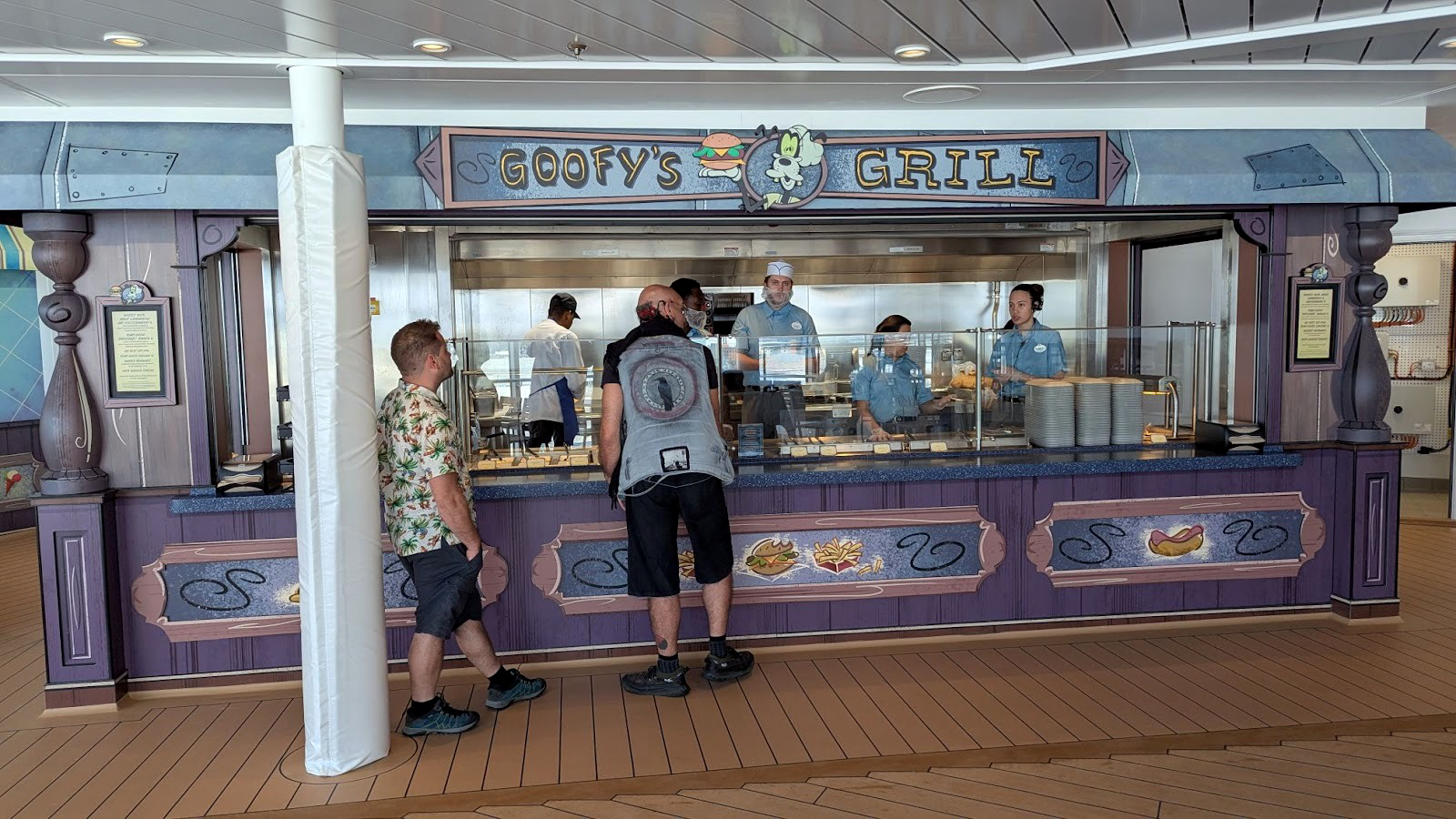 The real draw to Mickey and Friends Festival of Foods is, of course, the food. Each station offers up something different to pick up. Starting with Goofy’s Grill, we see that this is the go to spot for burgers and those classic cruise favorites - the chicken tenders.