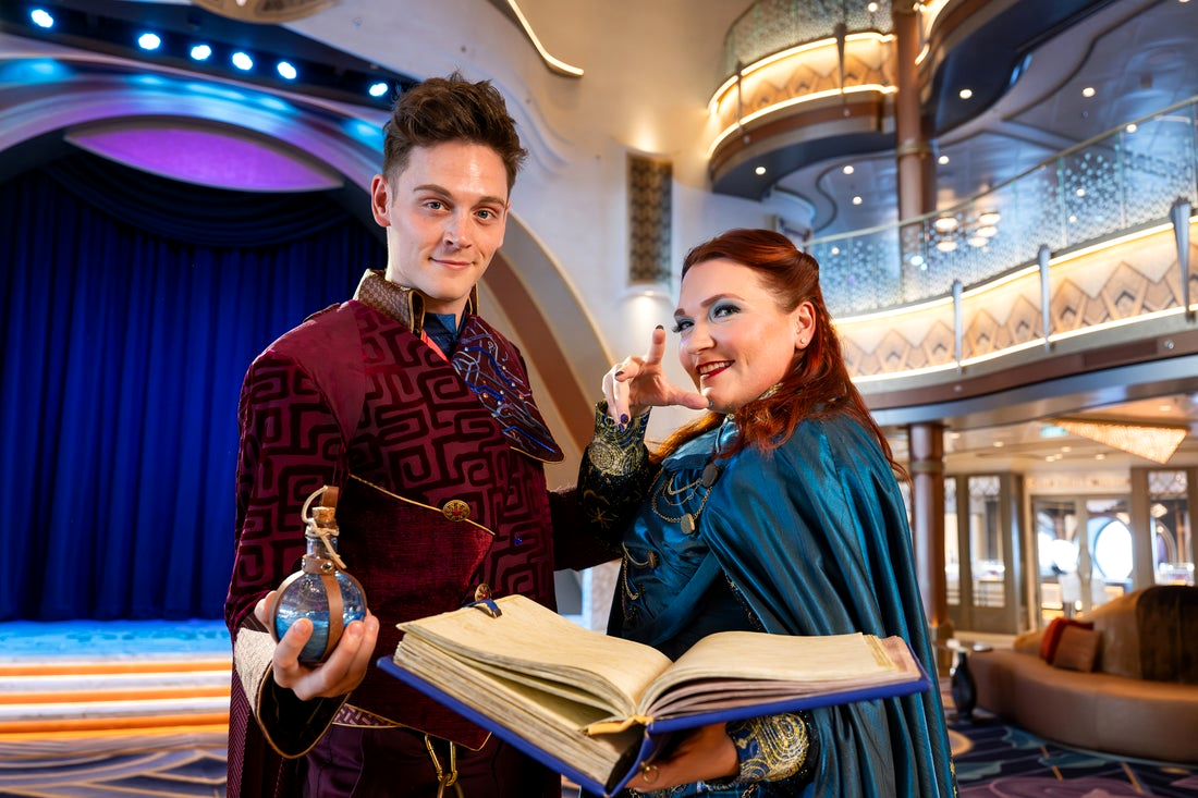 - These two characters serve as hosts to the different stories and legends throughout the ship, which also includes hosting their own shows - like the new “With Great Power: A Marvel Comedy Show,” which will take place in the Saga lounge of the ship.