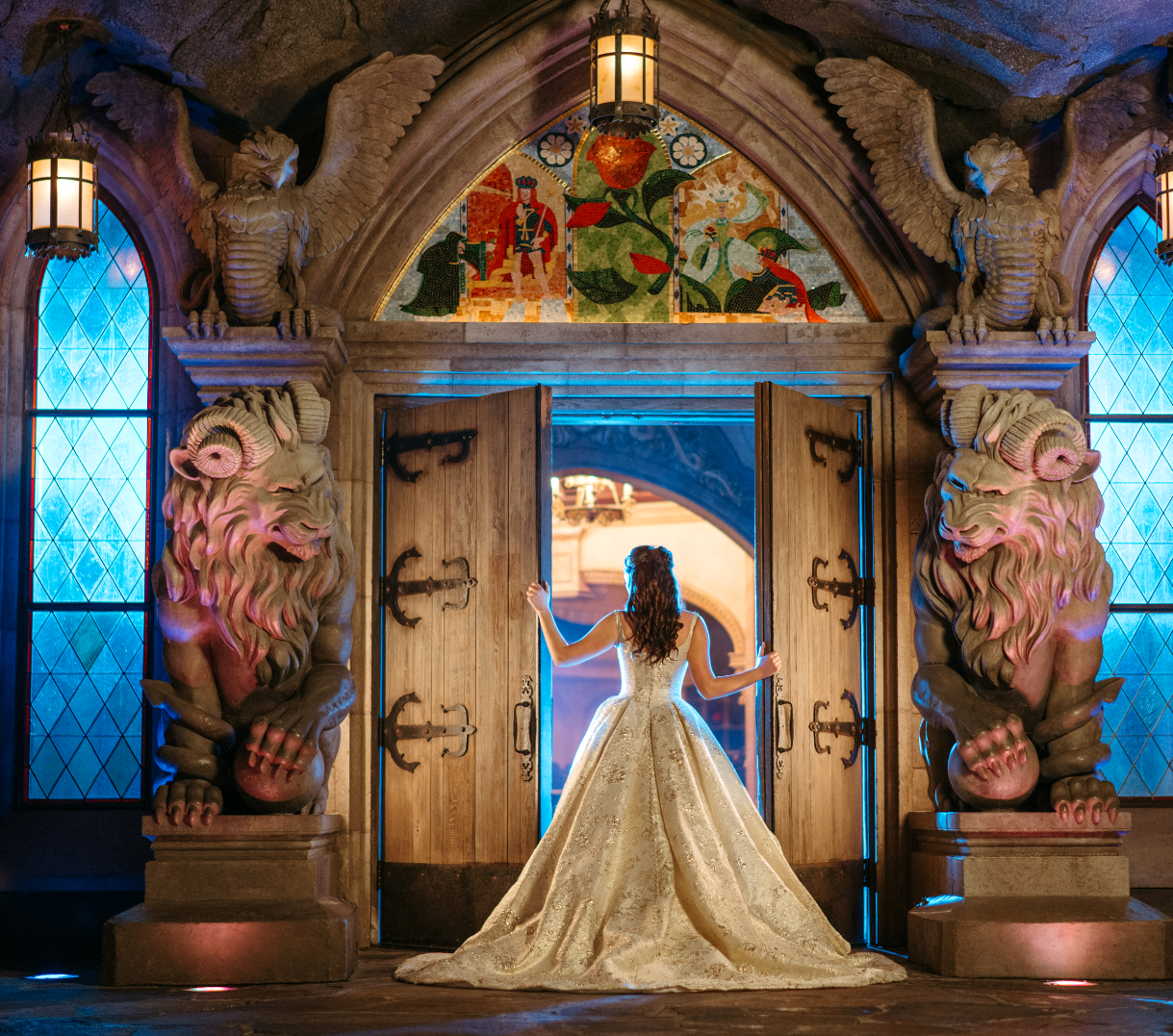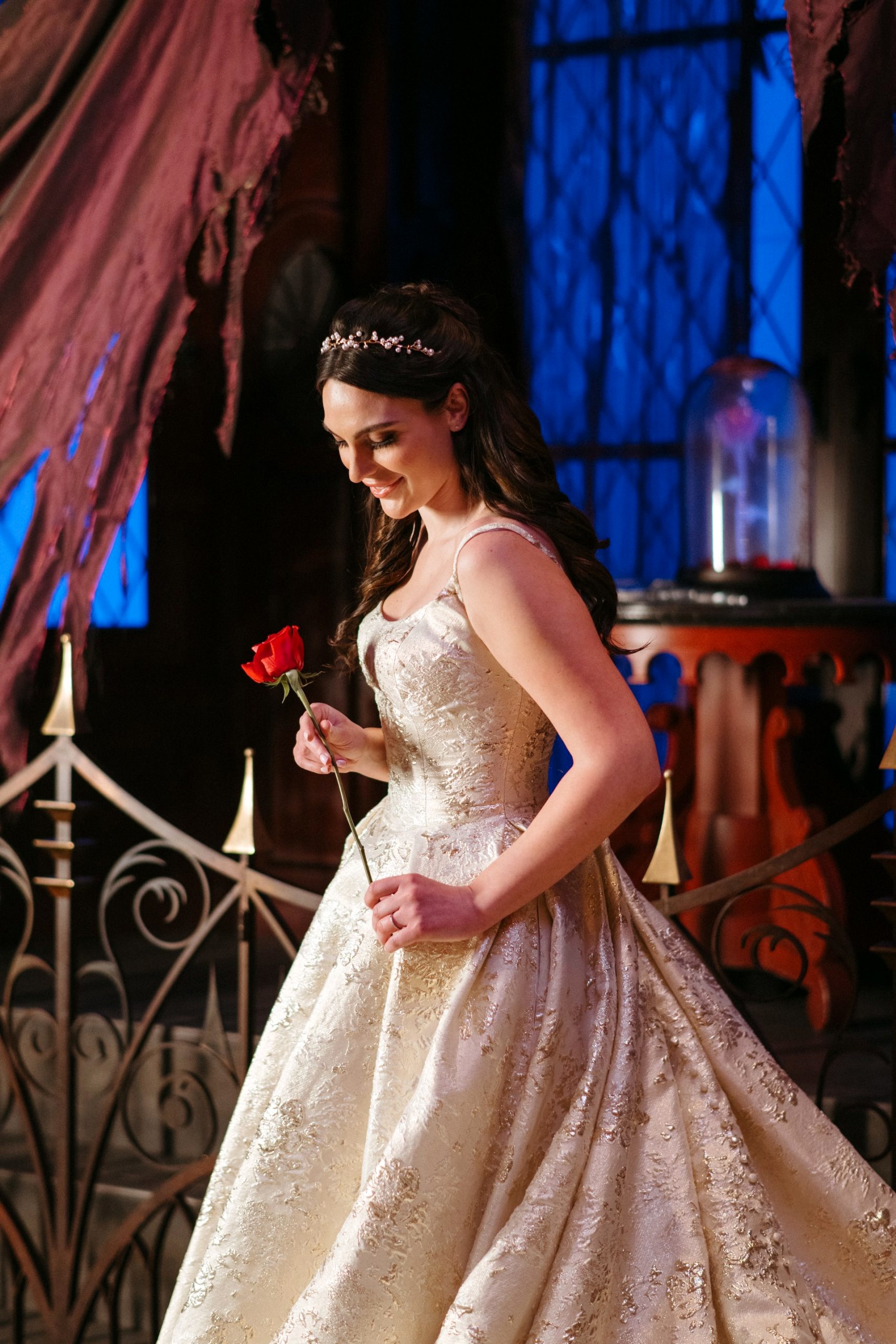 - The romantic design features soft gold tones, elegant draping, and delicate embellishments that echo Belle’s grace, courage, curiosity, and her ability to find beauty in every moment.