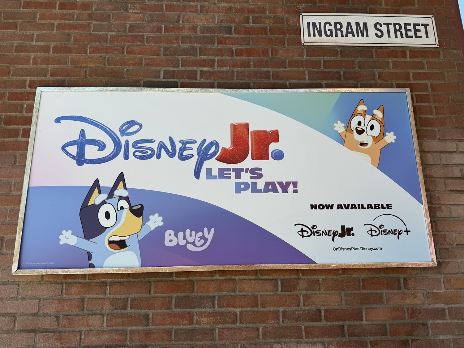 Right off the bat, we have to point out the Disney Jr. Billboard, featuring the characters from Bluey. Devotees may recall that back in December of 2024, Disney Parks broke the big story - the Disneyland Resort and Walt Disney World as well as the Disney Cruise Line, would soon be giving fans the opportunity to meet everyone’s favorite pup at these destinations.