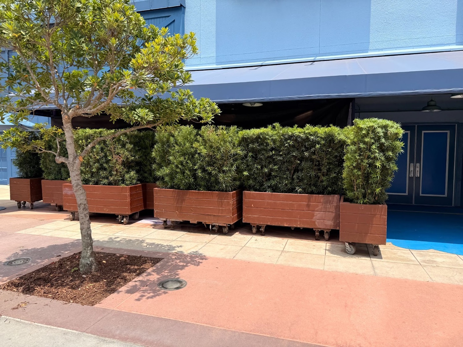 - Meanwhile over at Animation Courtyard, the usual meet and greet locations are blocked off by planters in front of Disney Jr. Play and Dance.