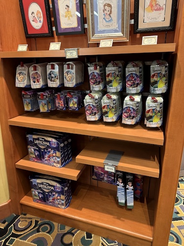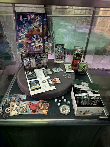 Other Disney Lorcana displays are staged in the Lobby area, and guests leaving the building through Off The Page will also find a number of Disney Lorcana products for sale so they can continue on their adventure throughout the park and back at home.