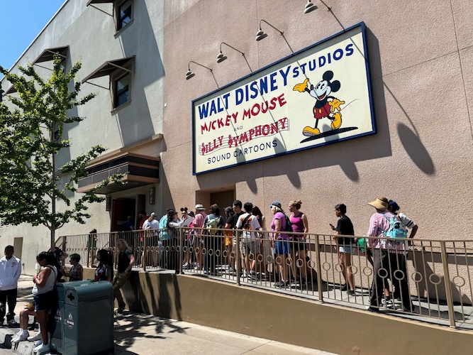 In the meantime, the queue to Meet Anna & Elsa has been moved to the queue space for Animation Academy. Don't be fooled by the queue blocking the Animation Academy entrance. That has been temporarily moved outside, with guests entering through a service door on the Sunset Blvd. side of the building.