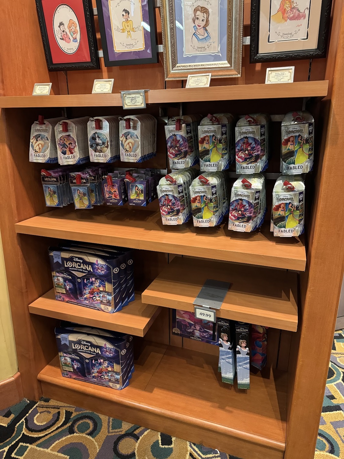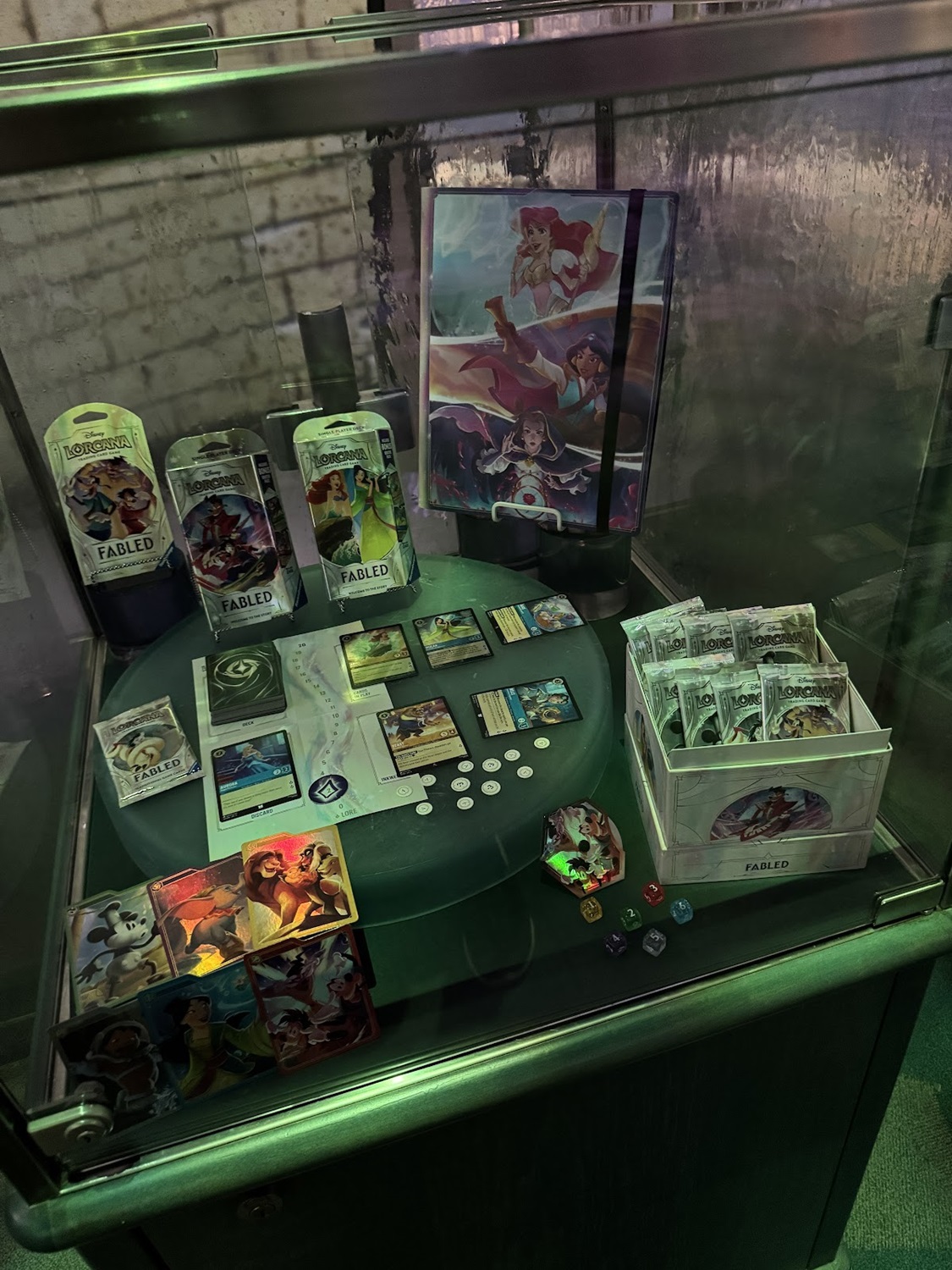 Other Disney Lorcana displays are staged in the Lobby area, and guests leaving the building through Off The Page will also find a number of Disney Lorcana products for sale so they can continue on their adventure throughout the park and back at home.