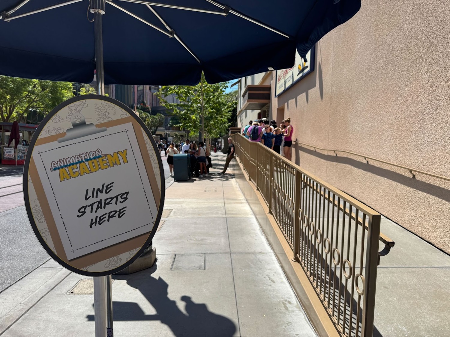 In the meantime, the queue to Meet Anna & Elsa has been moved to the queue space for Animation Academy. Don't be fooled by the queue blocking the Animation Academy entrance. That has been temporarily moved outside, with guests entering through a service door on the Sunset Blvd. side of the building.