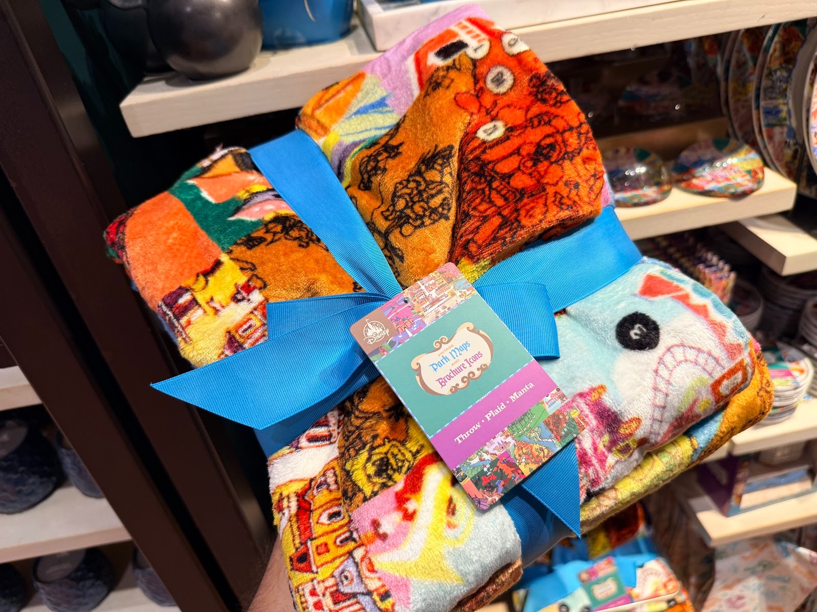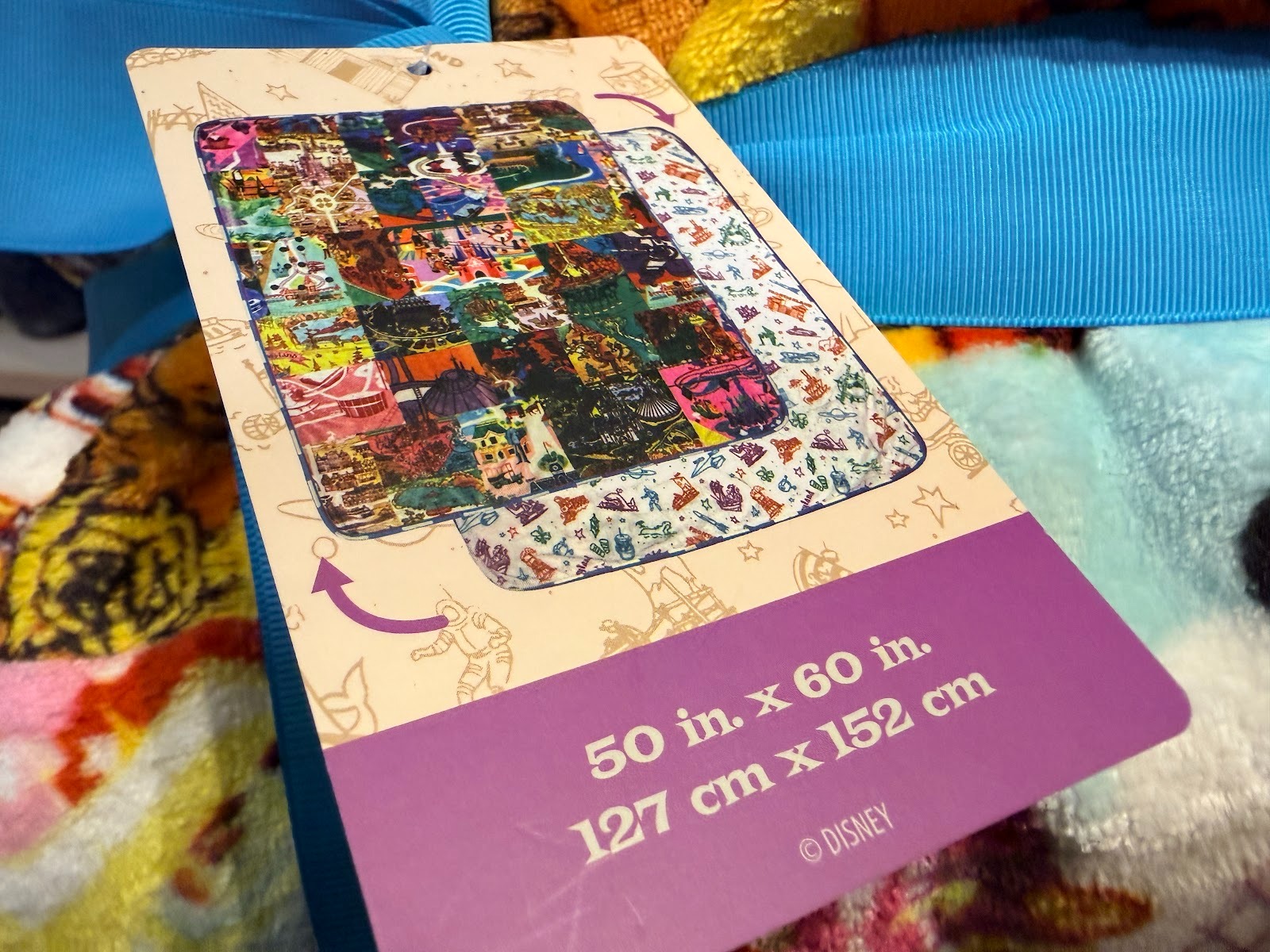A double sided blanket features both of the previous patterns - the full brochure art on one side and the icons on the other, and can be brought home for $69.99