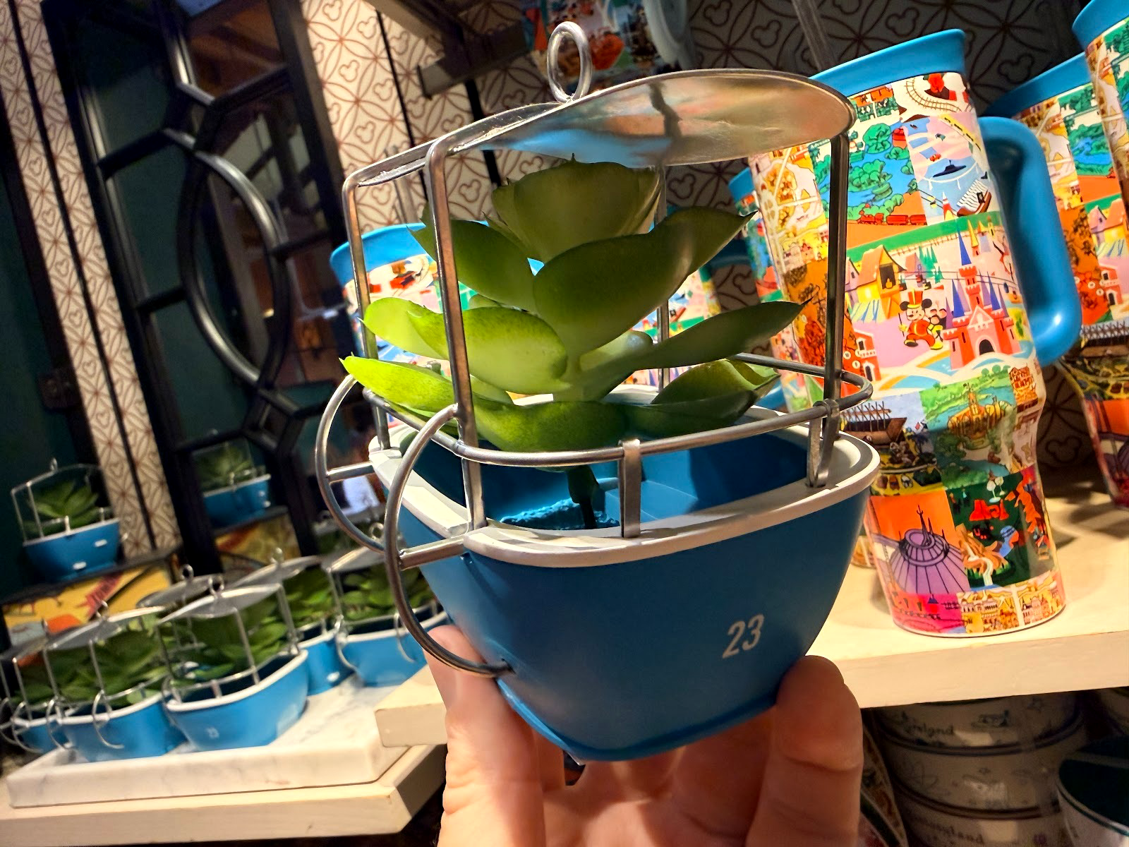 A set of coasters features the same art style and sells for $27.99, and a fun faux succulent in a skyway bucket can be picked up for $39.99.
