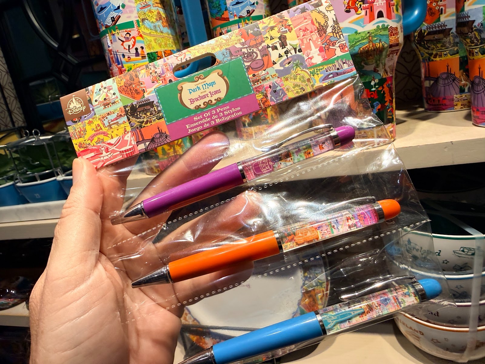We were at Disney Springs earlier in the day and stopped by the Marketplace Co-Op. The store usually has some fun finds throughout, with its different sections and store concepts and today was no different. While we were there, we spotted some fun new items featuring old Walt Disney World brochure art and icons.