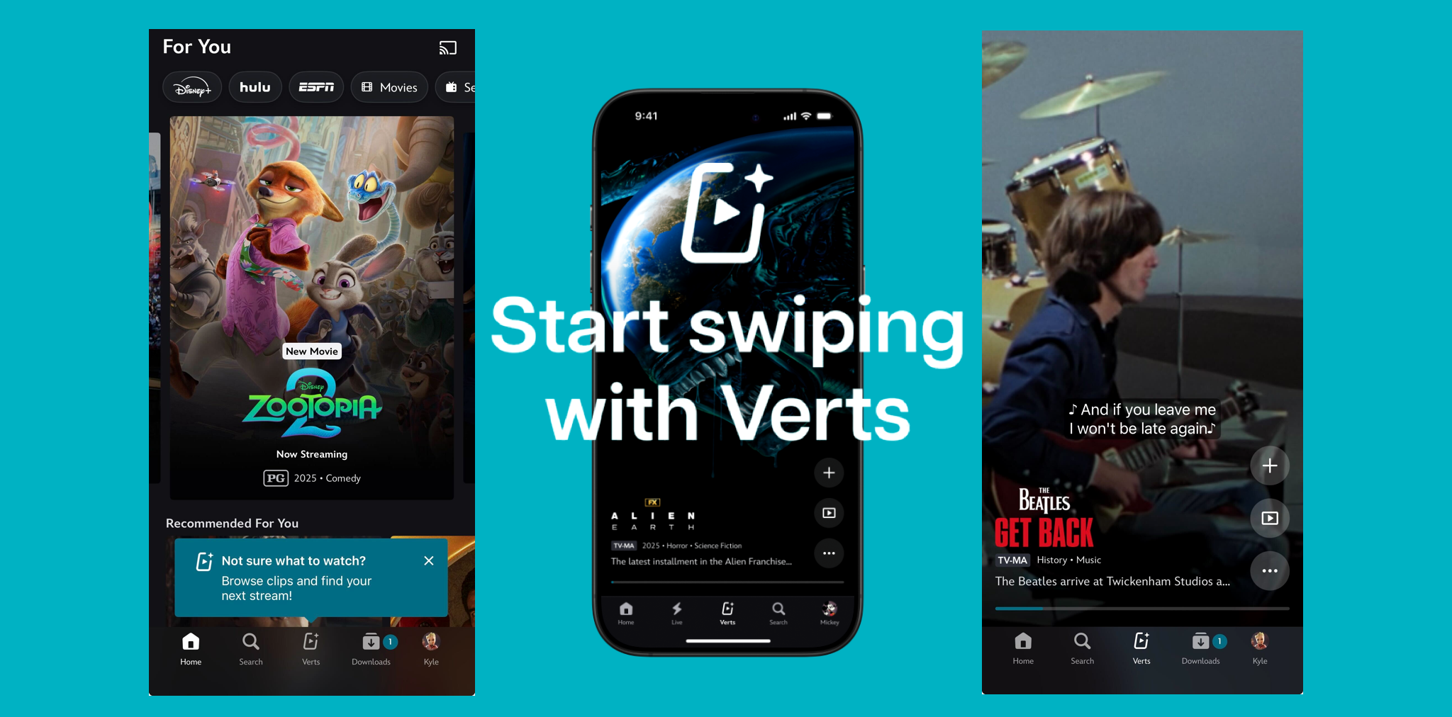 - Currently, Verts features clips from Disney+ and Hulu content.